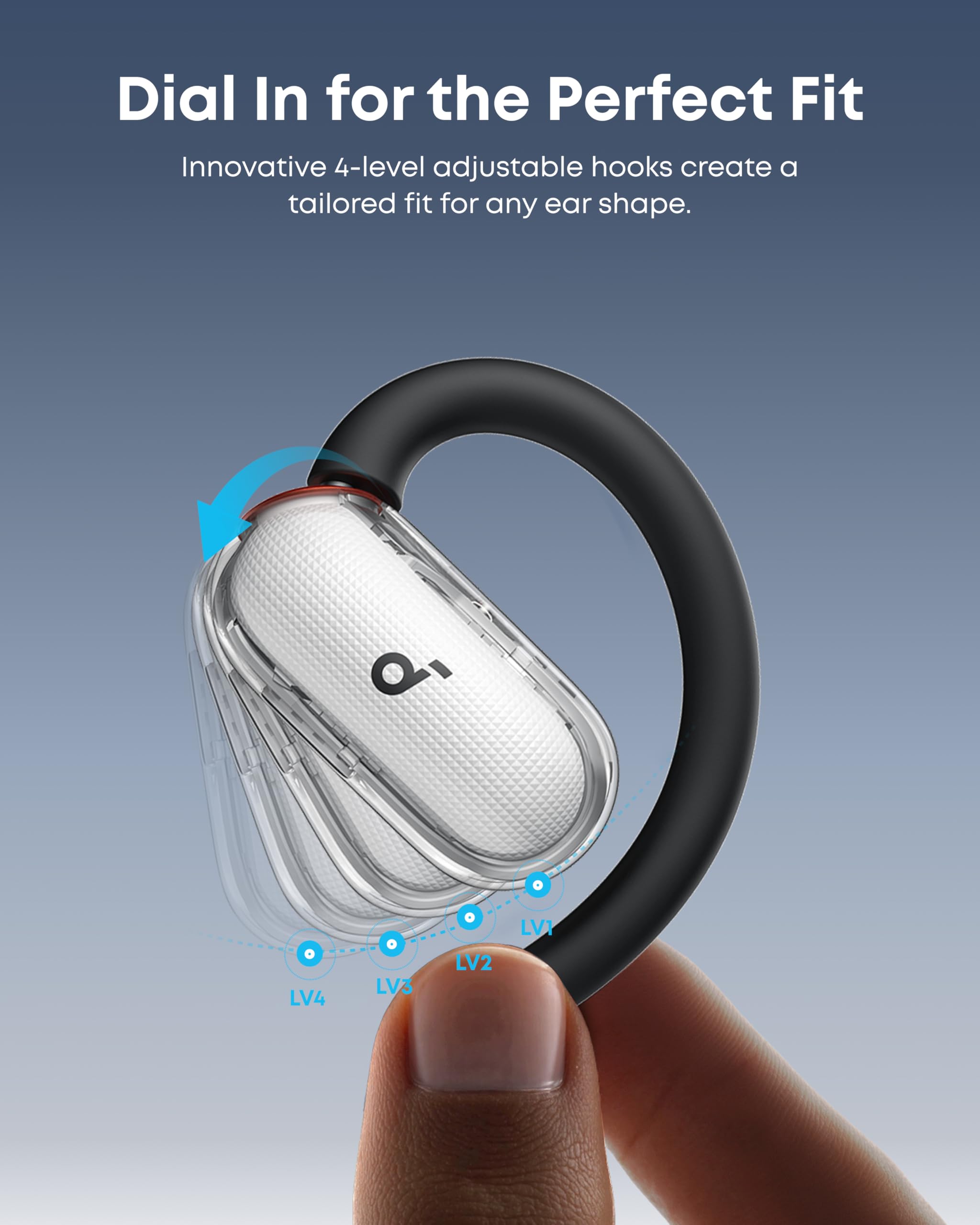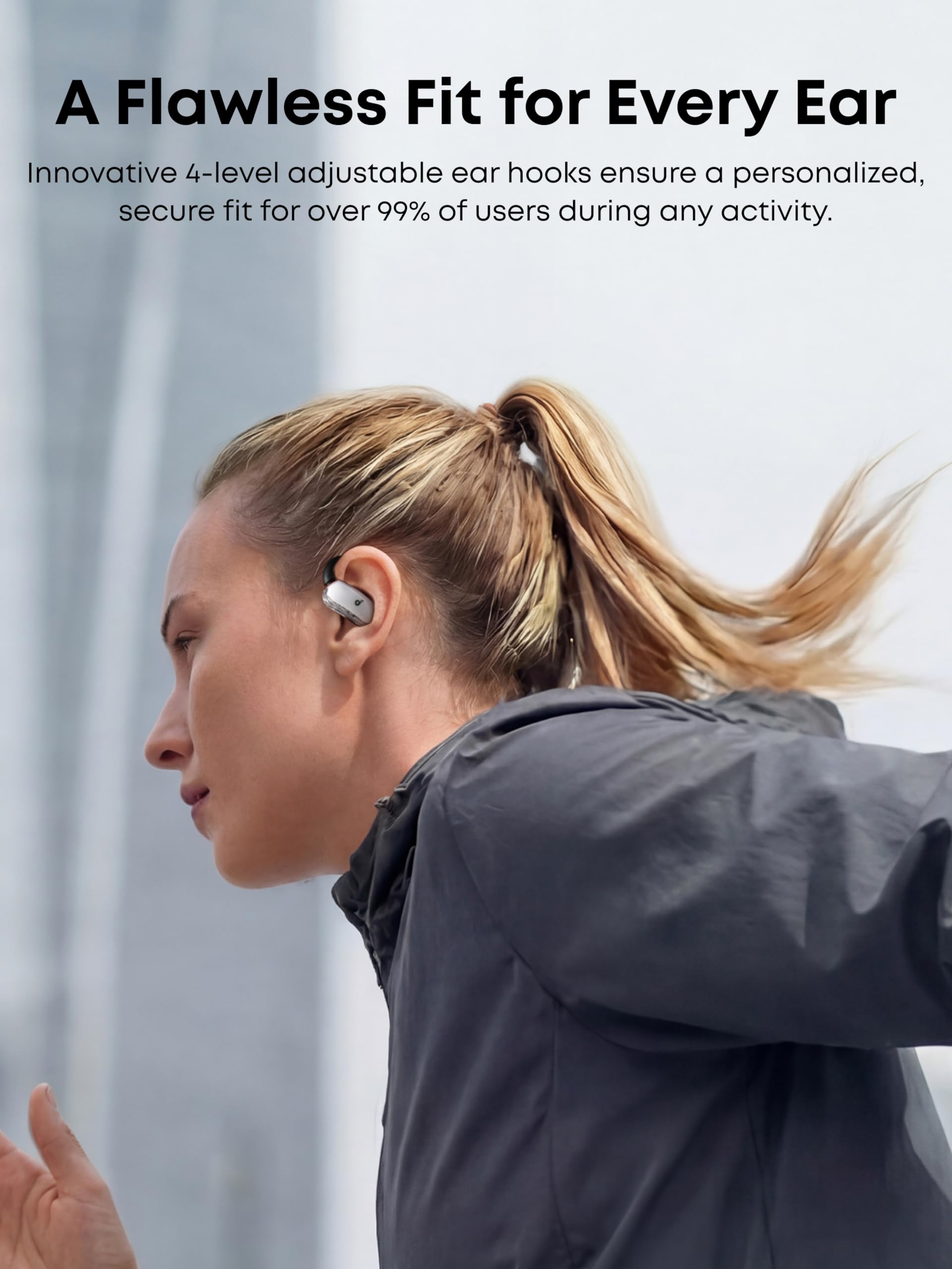 -A Perfect Fit for Every Ear: soundcore's innovative 4-level adjustable ear hooks ensure a comfortable fit tailored to over 99% of ear shapes and sizes.