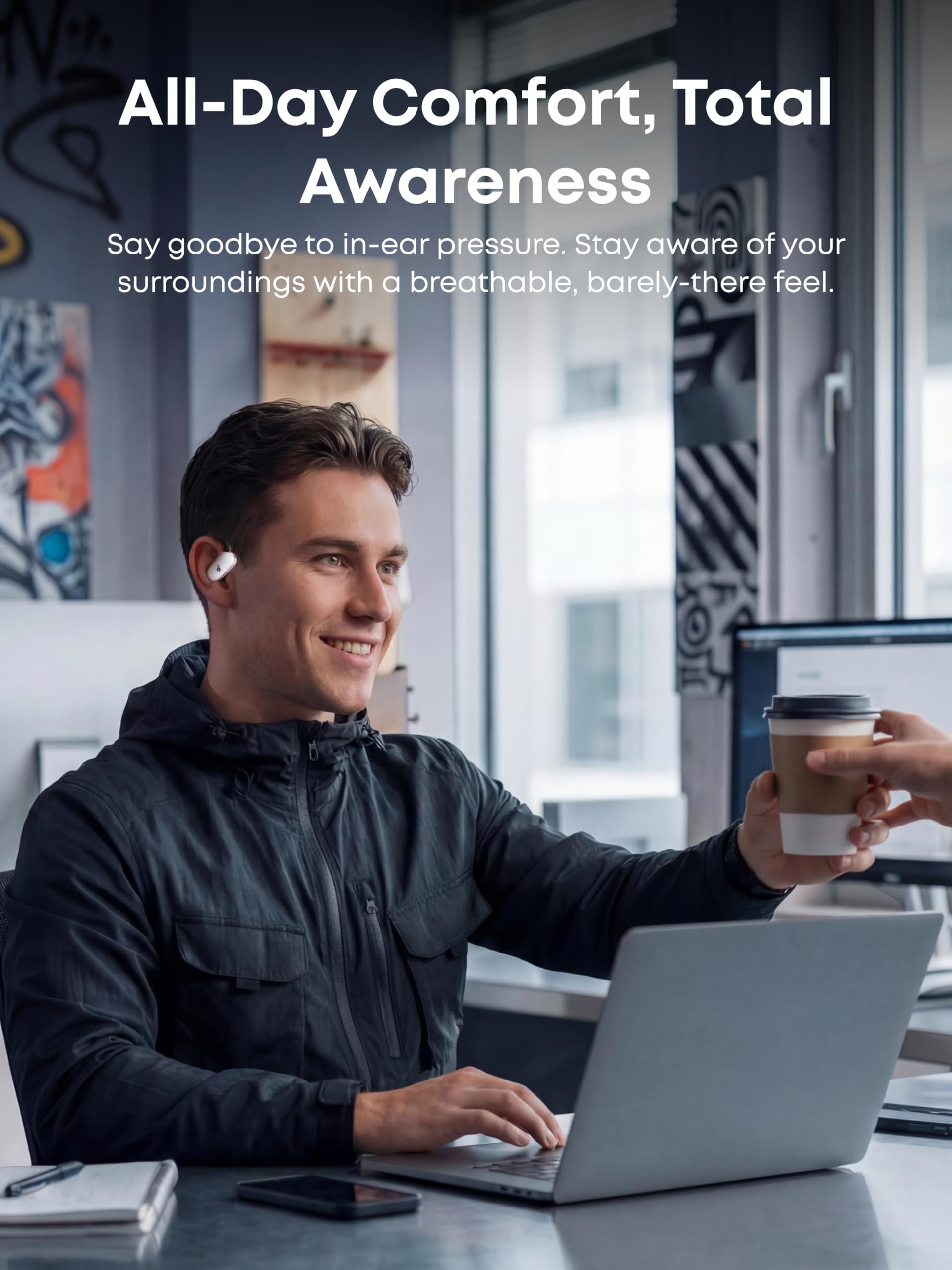 -Stay Comfortable, Stay Connected: V40i's open-ear design frees you from in-ear pressure and tight clamping, ensuring breathable comfort while keeping you aware of your surroundings all day long.
