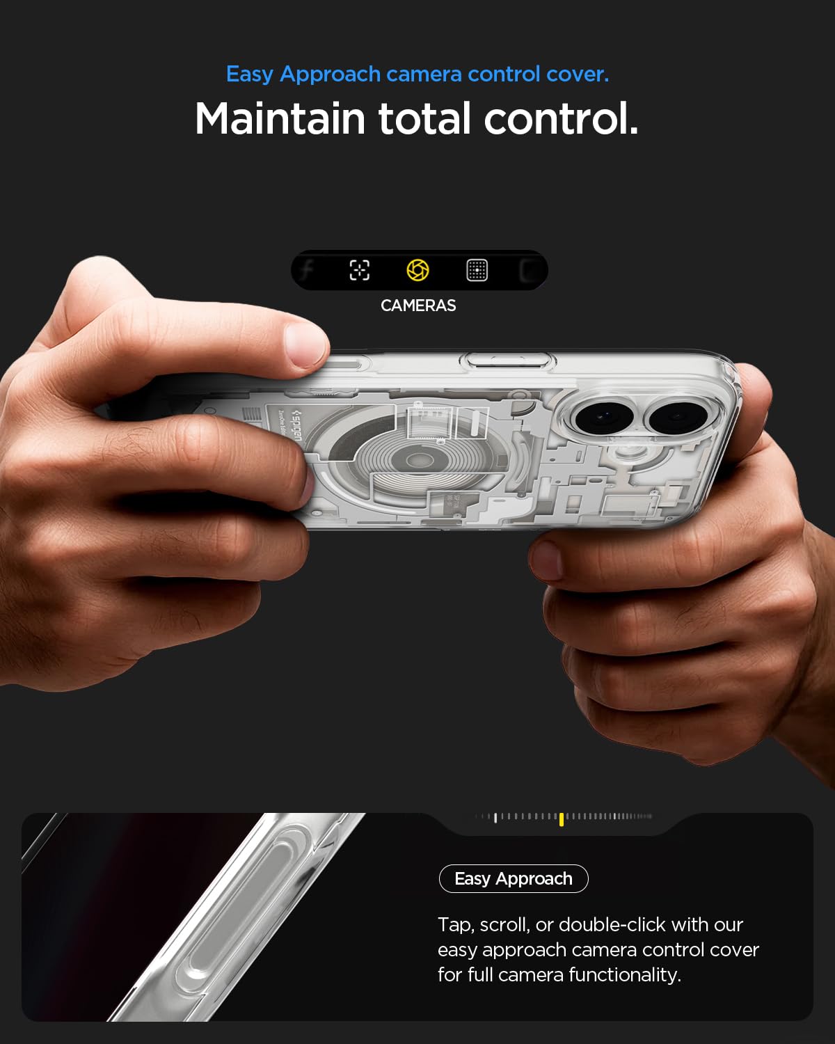 -The camera control button is covered by a thin TPU layer, providing protection while maintaining functionality.