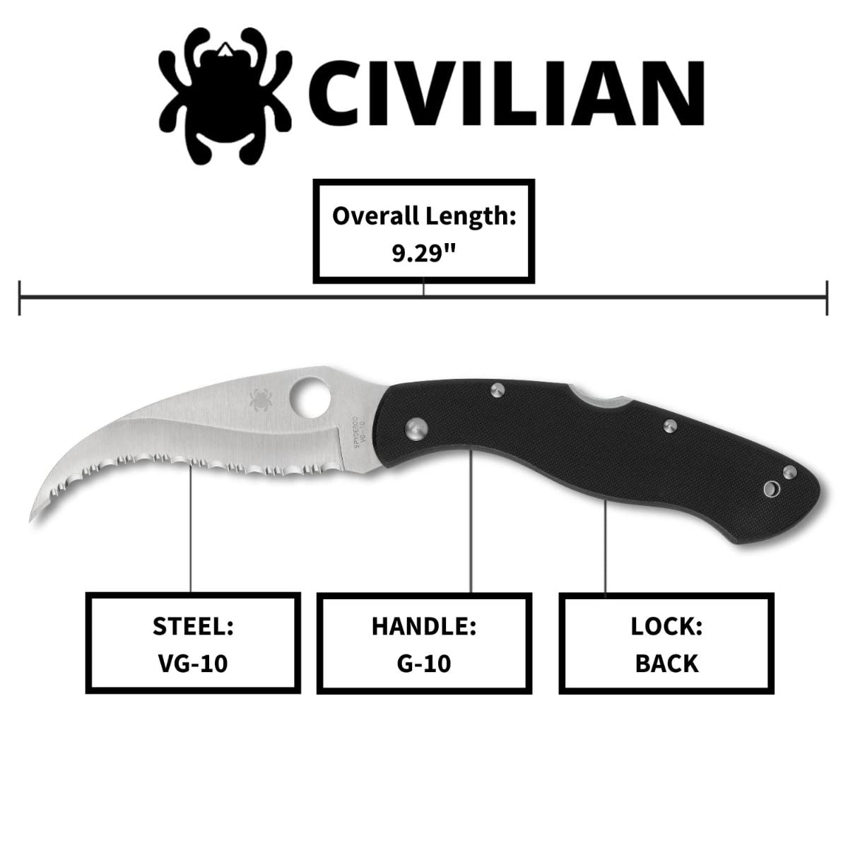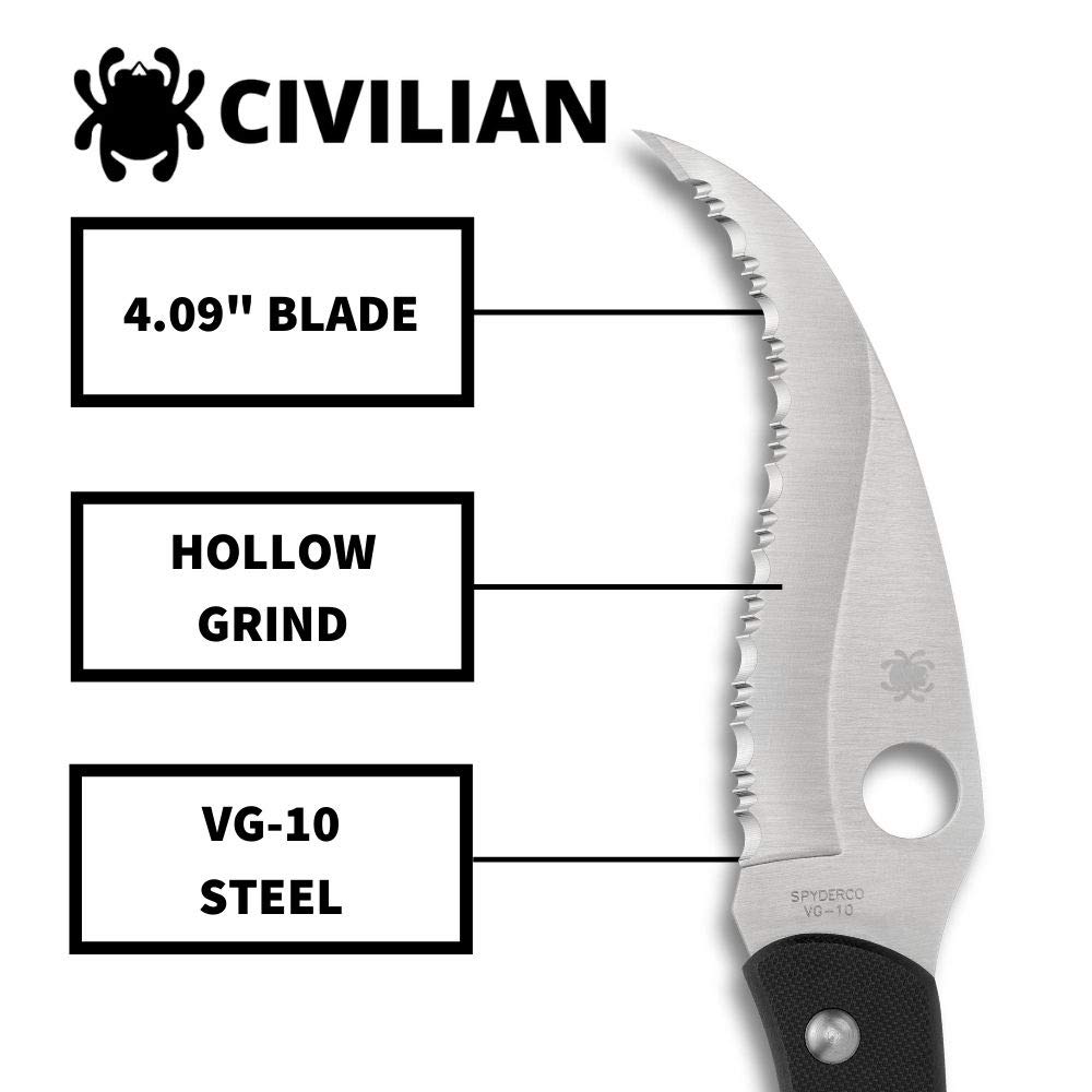 -Superior Quality: The Civilian has a patented reverse "S" blade that's intended to be used like an oversized claw. The tip is ground to an ultra-thin profile.