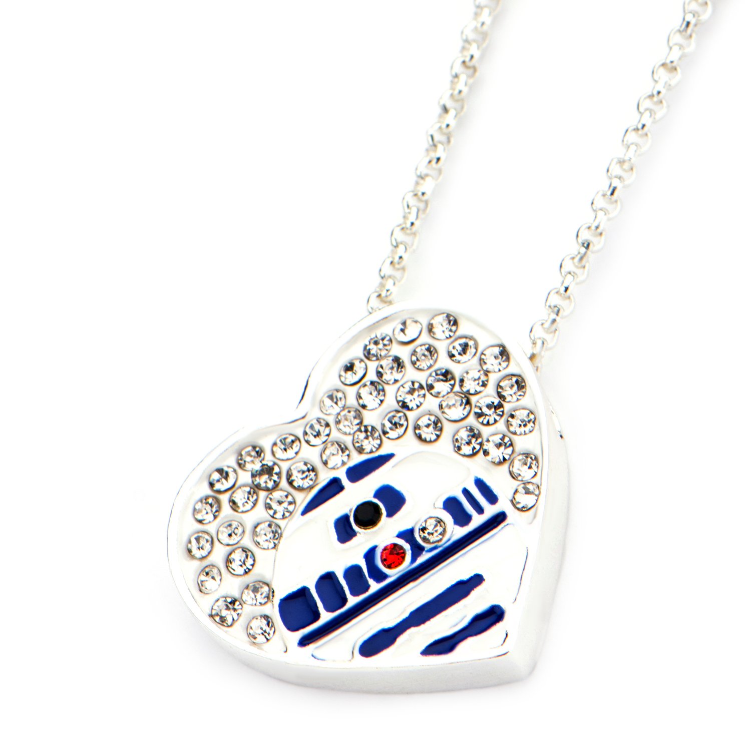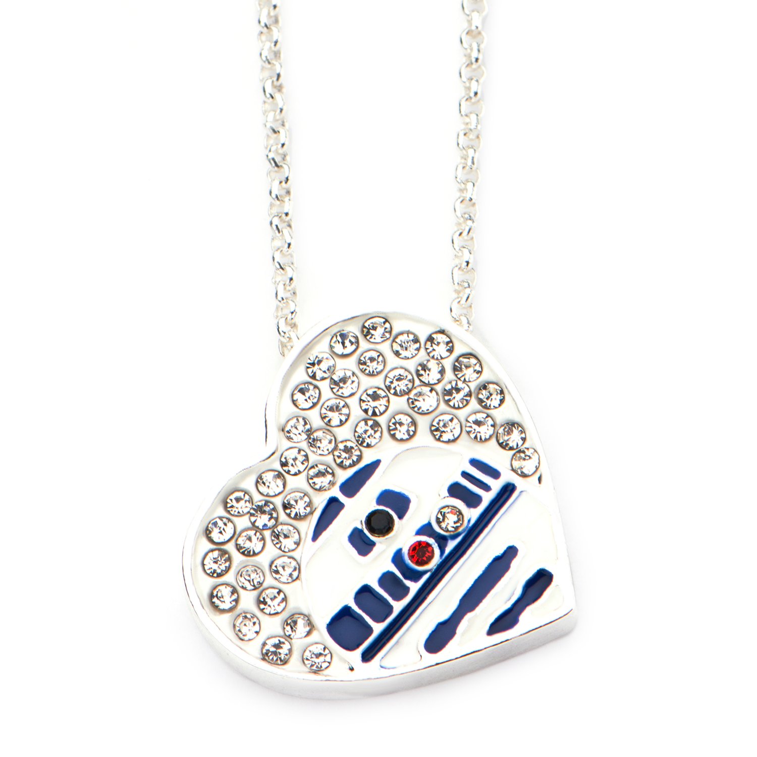 Description Star Wars Jewelry Silver Plated R2-D2 Heart in Genuine Crystals Pendant with Chain Necklace