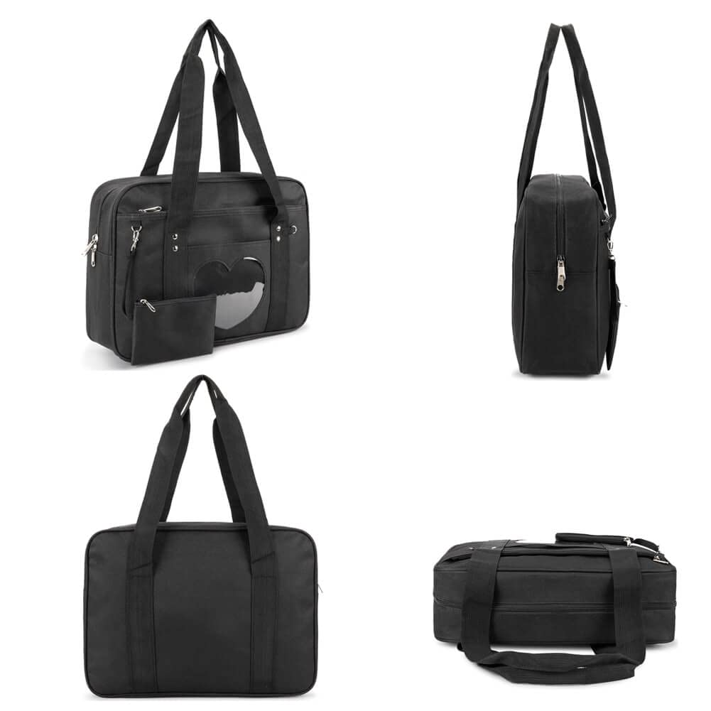 STEAMEDBUN Kawaii Ita Bag Bolso escolar japonés Lindo bolso de mano Bolso grande con forma de corazón de anime (Negro)