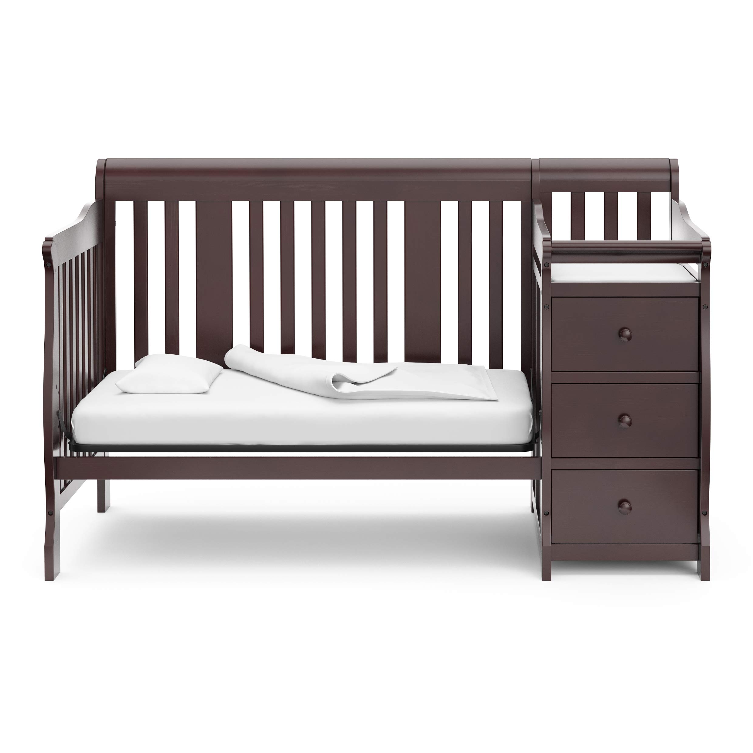 Storkcraft Portofino 5-en-1 Cuna convertible y cambiador (espresso)-Cuna y combinación de tetas cambiantes con 3 cajones, incluye almohadilla para el bebé, se convierte en cama de tamaño completo