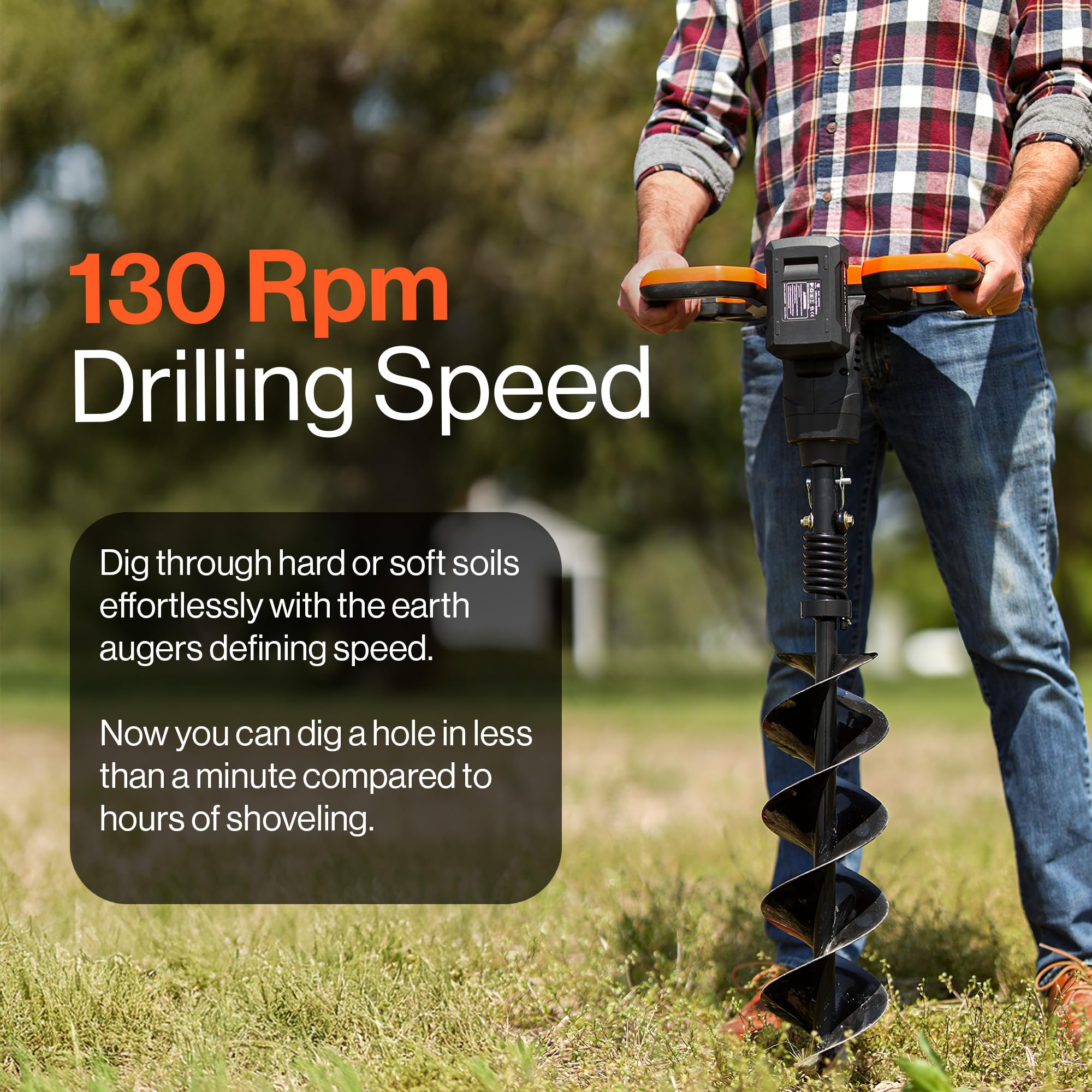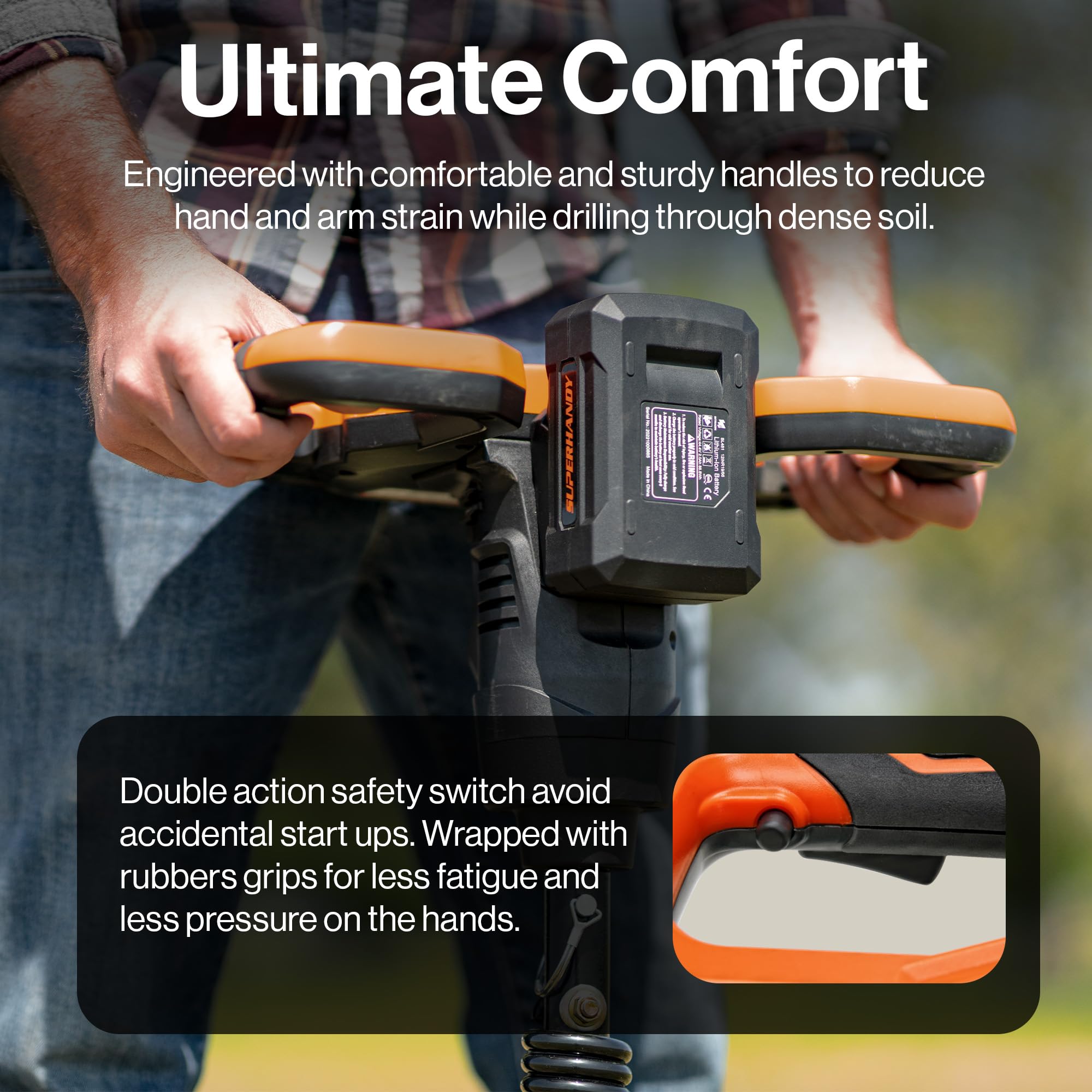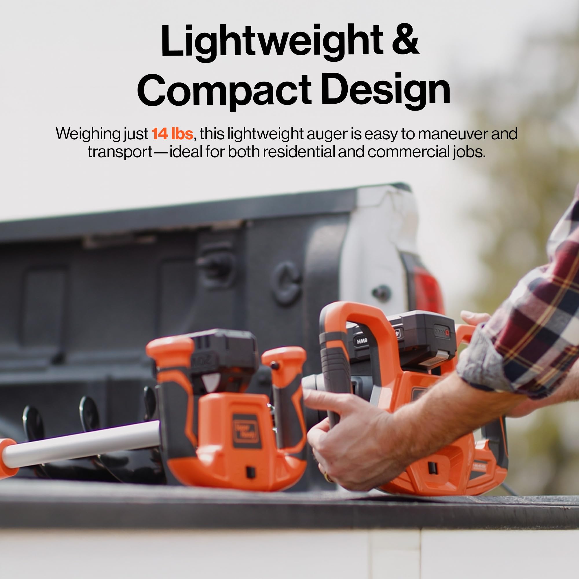 -ECO-FRIENDLY AND CONVENIENT: With our battery-powered design, you can say goodbye to the hassle and environmental impact of gasoline-powered tools. Our auger is not only lighter and quieter but also produces no smog, making it an excellent choice for eco-conscious users who require the convenience and portability of a cordless tool.
