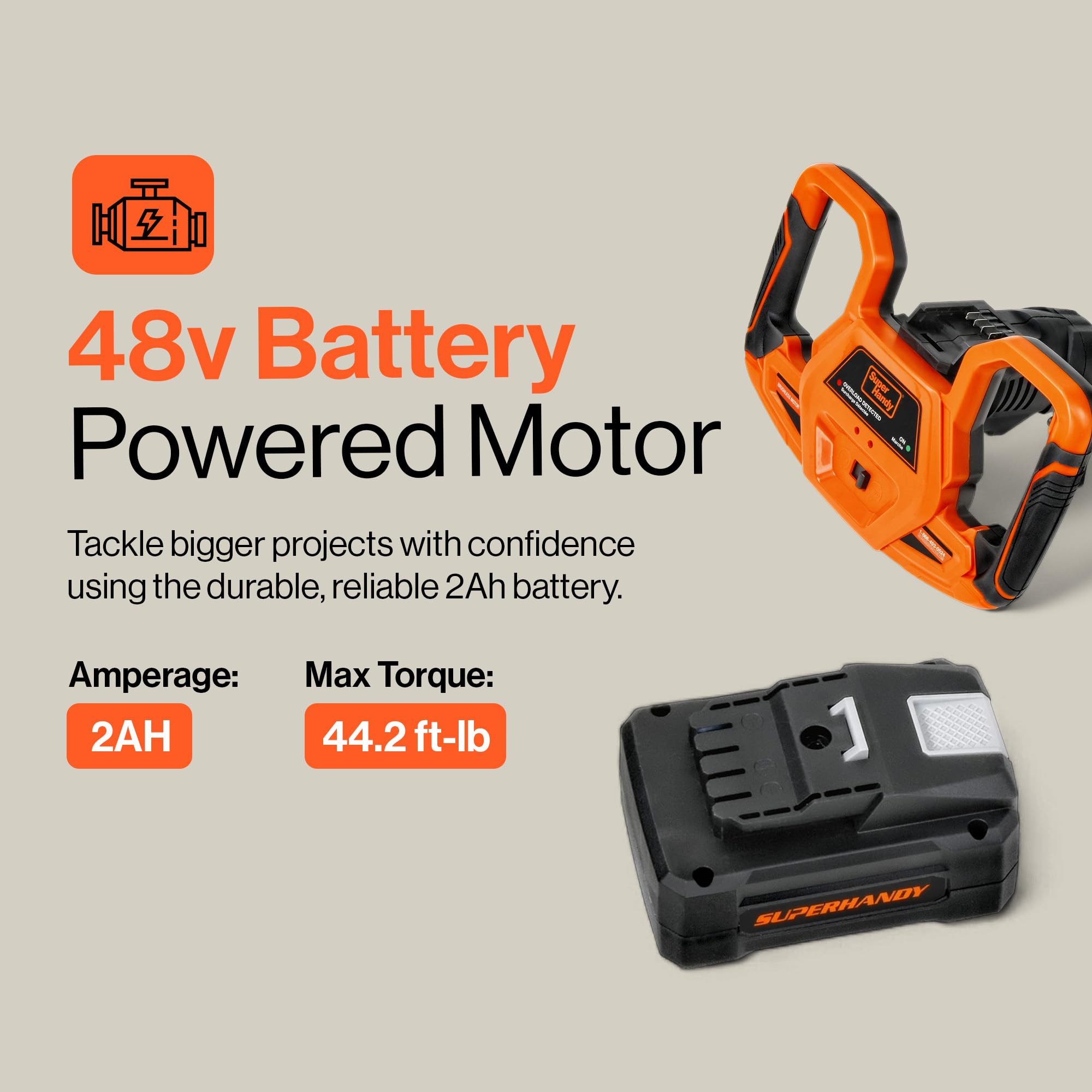 -GAS-FREE & SAFE: Unlike gasoline auger, battery-powered auger produce no smog and are quieter. This product is equipped with an overload protector to prevent the power head from overheating. The wide-spaced handles improved balance during operation. BATTERY INCLUDED: One 2 Amp Hour Lithium Ion Battery & Charger are included. An optional 4 Amp Hour battery is available for purchase.