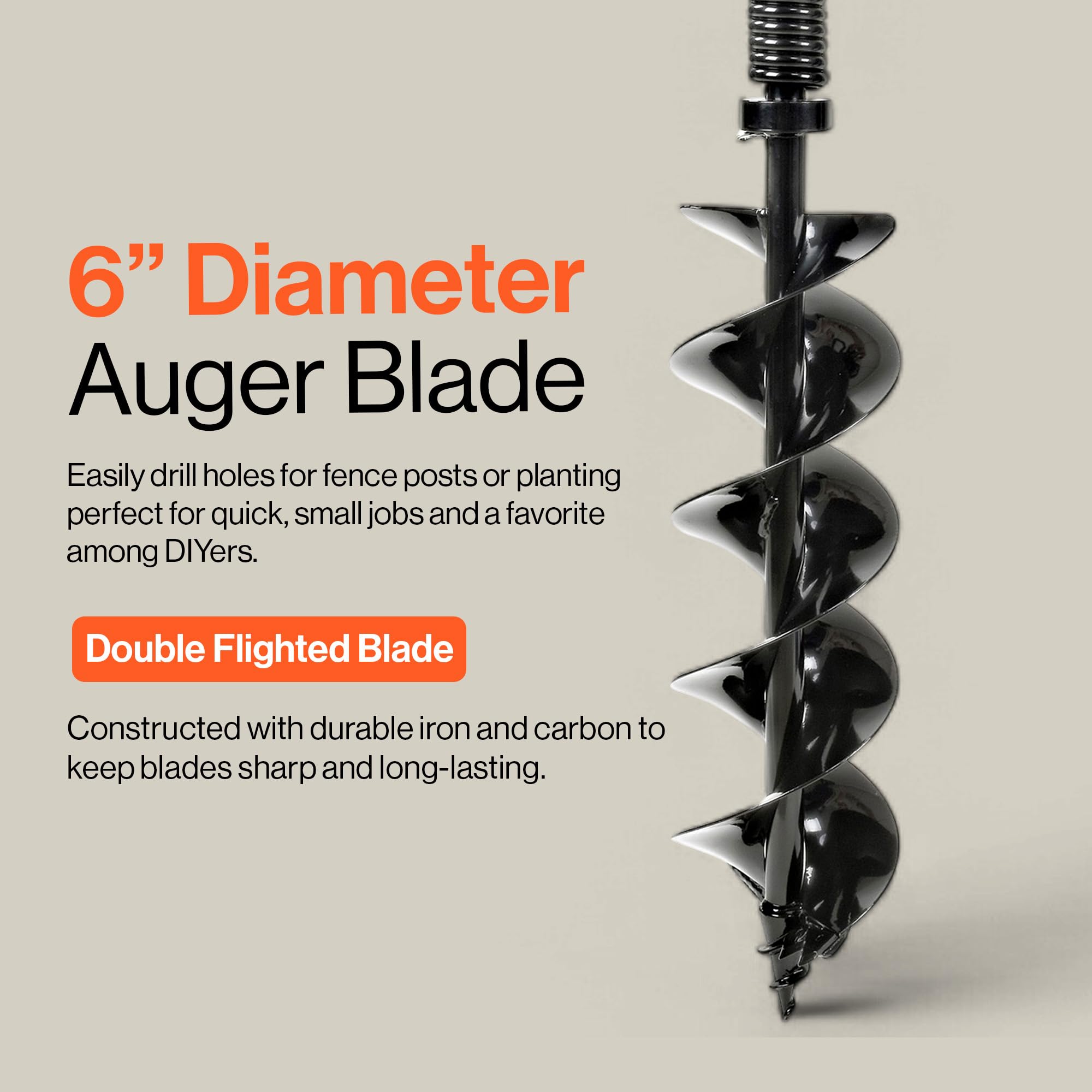 SuperHandy Earth Auger Power Head con broca de acero de 6 x 30 pulgadas, batería de iones de litio