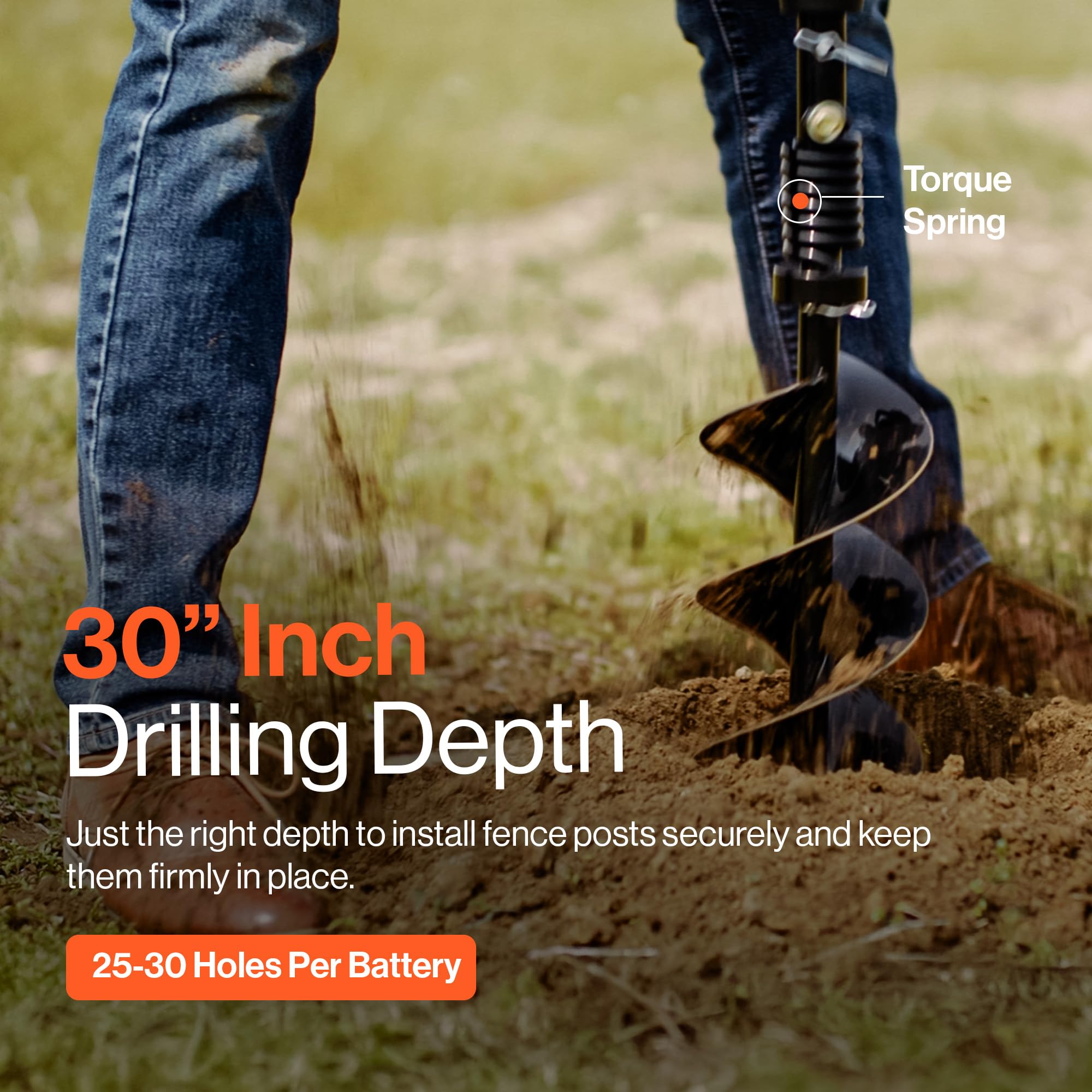 -EFFICIENT: Our Power Head is designed with a 3-Planetary Gear Mechanism for higher transmission efficiency. A Brushless Motor makes the digging process more smooth & efficient. Item only weighs only 22 Lbs. including the 2Ah Battery, Power head & 6' x 30" Earth Auger Bit. All augers are produced with the universal Cap Screw Bolt thread design.