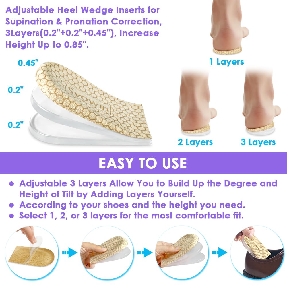Svowin 3 Layers Adjustable Supination Overpronation Insoles, Anti-slip Medial Lateral Heel Wedge Insoels for Foot Alignment, Knee Pain, Bow Legs, Osteoarthritis