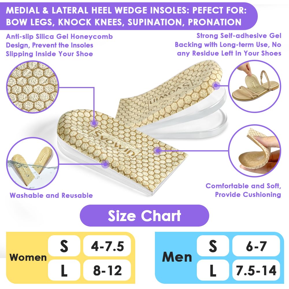 Plantillas de sobrepronación de supinación ajustable SVOWIN 3 capas, plantillas de cuña laterales mediales anti-deslizamiento para alineación del pie, dolor de rodilla, piernas de arco, osteoartritis (beige, L: W 8-12/ m 7.5-14)