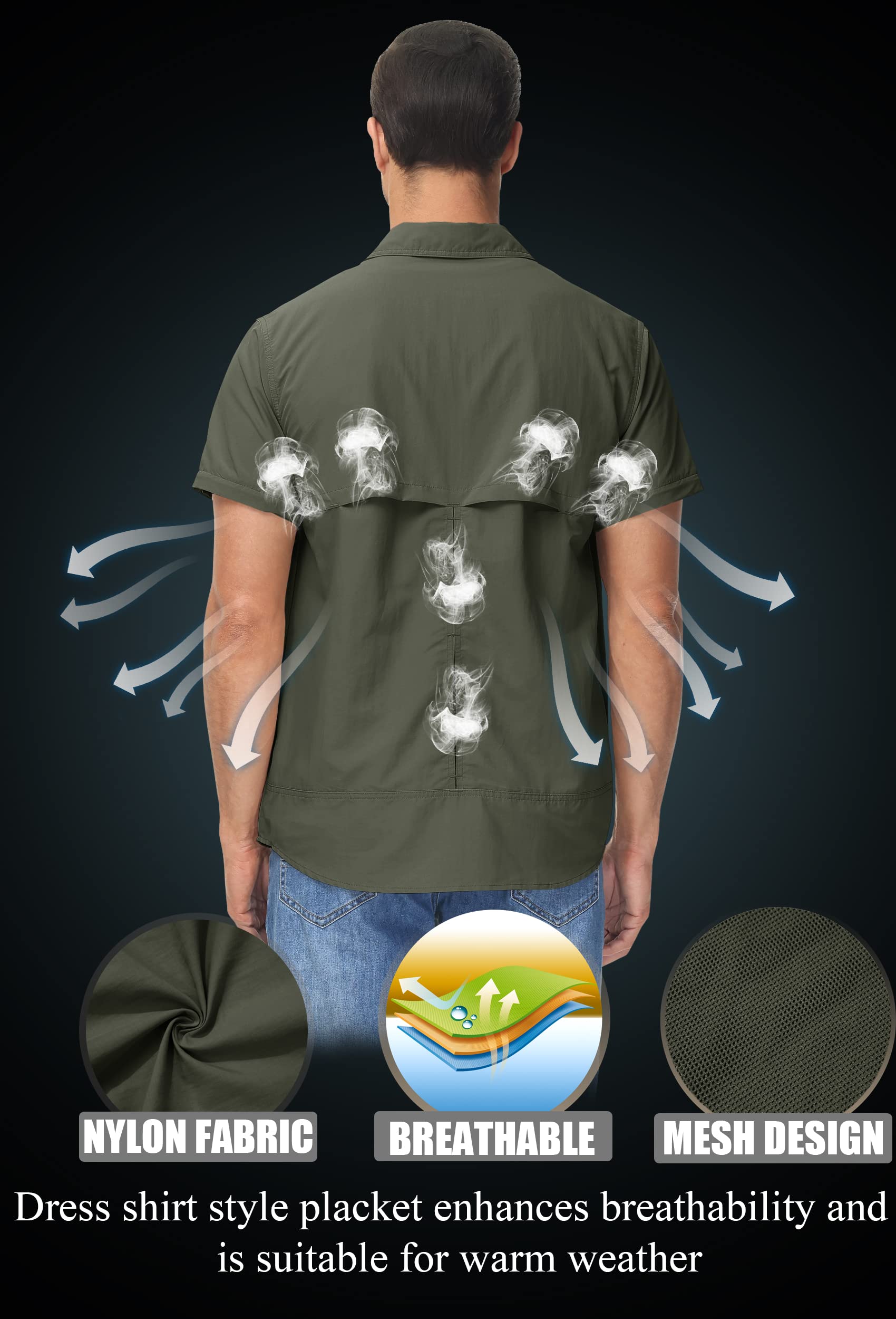 -The back with mesh design, enhanced ventilation for warm climates, dress shirt style placket