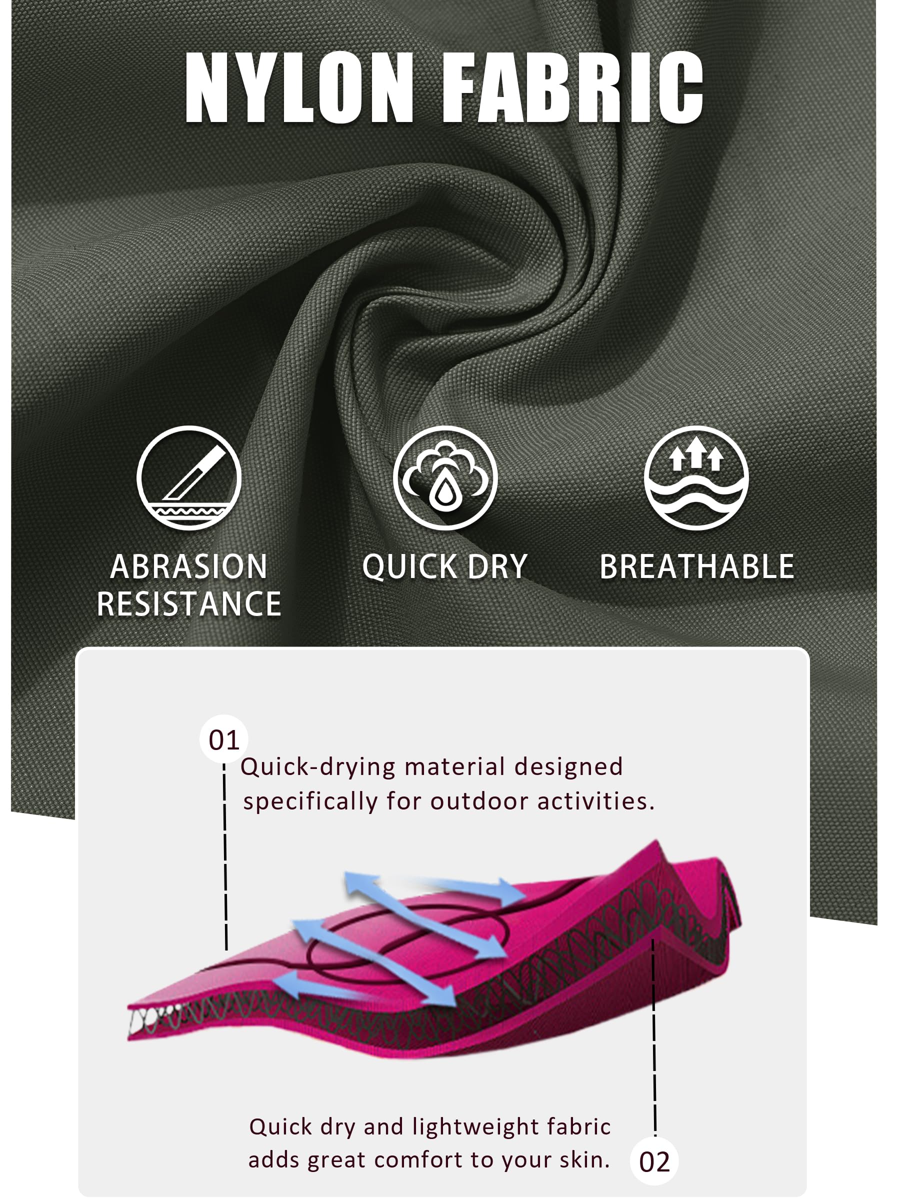 -Abrasion resistance, scratch, breathable, uv protection, resist stains and dries quickly