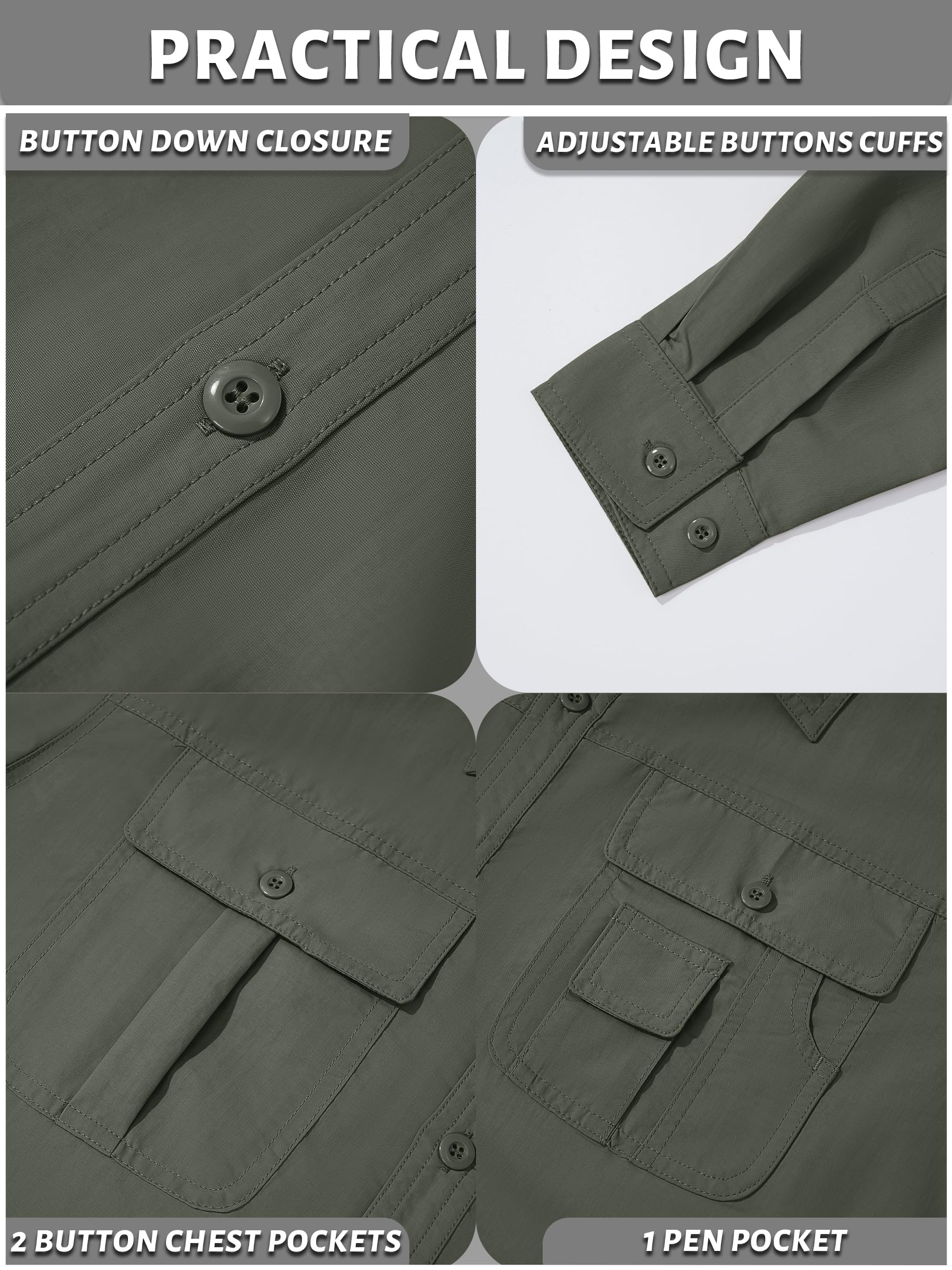 -Button down chest pockets, long sleeves with zipper can be zipped off convertible short sleeve shirt