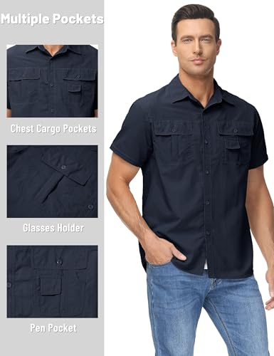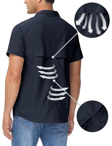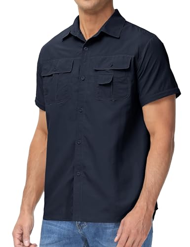 TACVASEN Camisa táctica de manga larga para hombre para construcción, tops de trabajo ligeros con botones para safari, senderismo militar, azul marino, XL