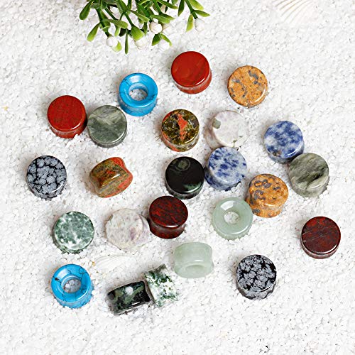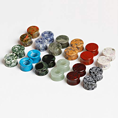 TBOSEN - 24 piezas de tapones para los oídos de piedra mixta, túneles, montura de doble llamarada, medidores de estiramiento, expansor, conjunto de piercings para el cuerpo, calibre 2g - 5/8 pulgadas