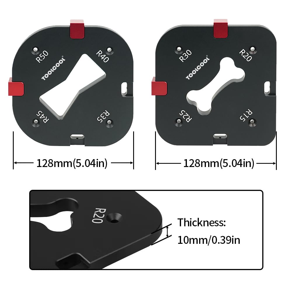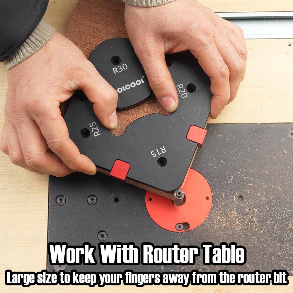 TOOLCOOL Plantilla de radio de esquina para enrutador Plantilla de radio para enrutador Juego de guÃas de enrutamiento de esquinas de aleación de aluminio Uso con enrutador de ajuste de mesa o enrutador de mano