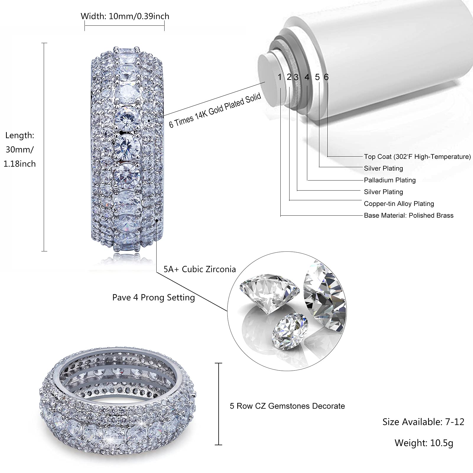 -Premium Materials: Crafted with high-quality materials, including sparkling cubic zirconia stones set in 14K golden plating, this ring has a width of 10mm and is available in sizes 5-12, including half sizes, giving you more choices to find the right fit