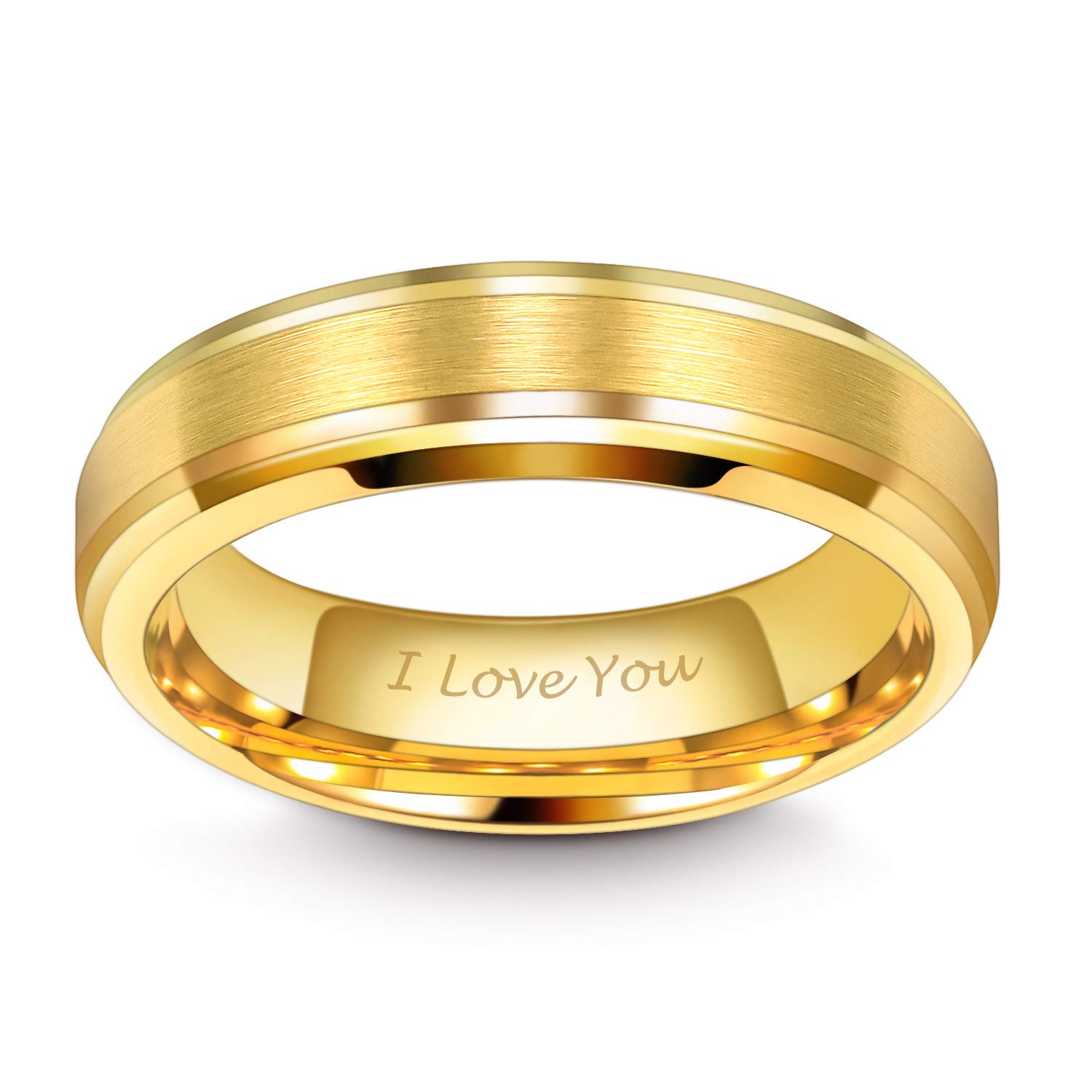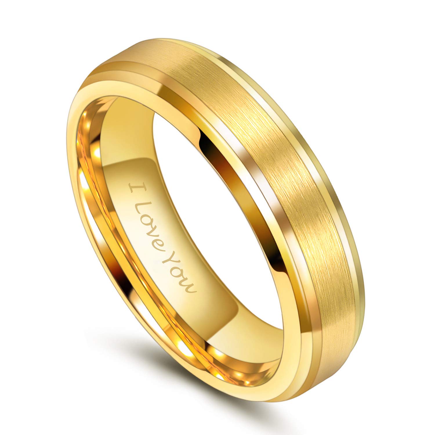 TRUMIUM Anillo de boda chapado en oro de 24 quilates de 0.236 in para hombres y mujeres, anillo de tungsteno grabado I Love You, ajuste cómodo sólido, tamaño 10,5