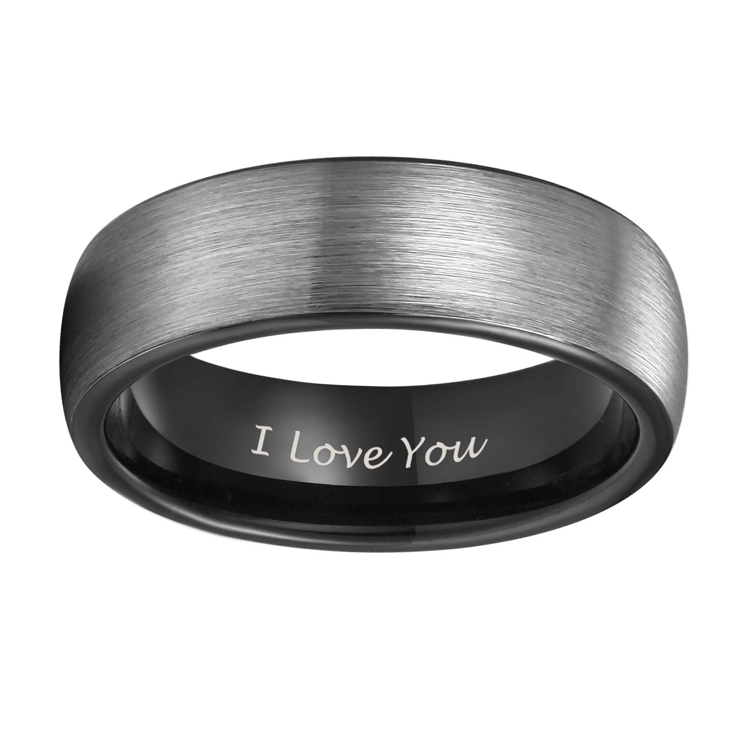 TRUMIUM Anillo de tungsteno negro para hombre de 6 mm, anillo de boda fino con grabado "I Love You"