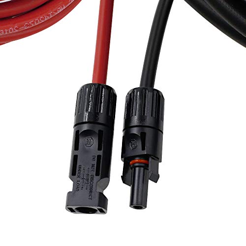 - *Package Included: 1 x Black Solar Panel Extension Cable, 1 x Red Solar Panel Extension Cable. Both 10AWG(6mm) solar cables are terminated with MC4-Connectors. The total length of each cable is 5ft / 1.5m.