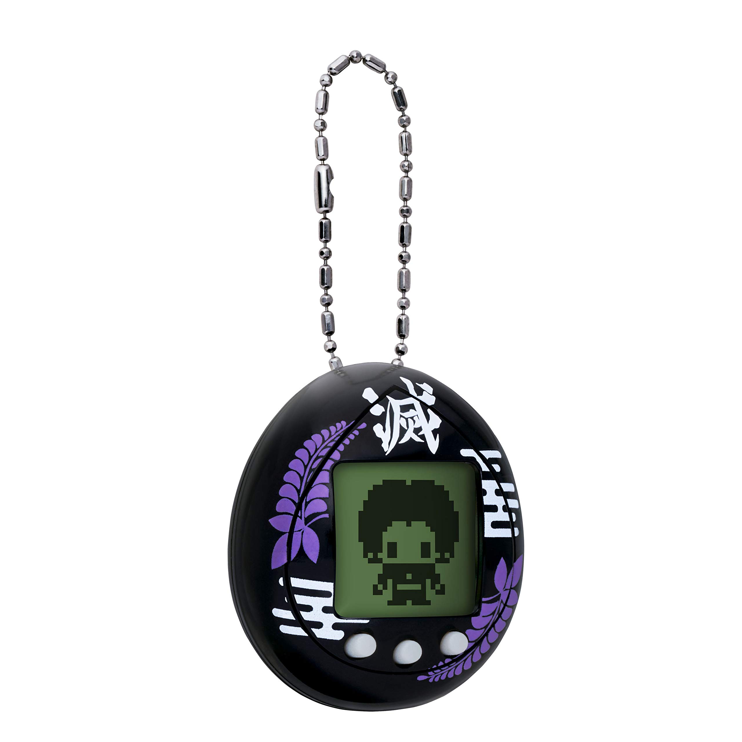 Raise your demon slayer and master different breath styles with the Demon Slayer Tamagotchi. Based on your training methods, you can raise your character into one of many different Breath users. Feed your slayer either rice bowl or green tea and play three different games. If you neglect training, you Slayer will become injured. If you do not treat the injury, you will die. Japanese programming with a black design. Ages 6+