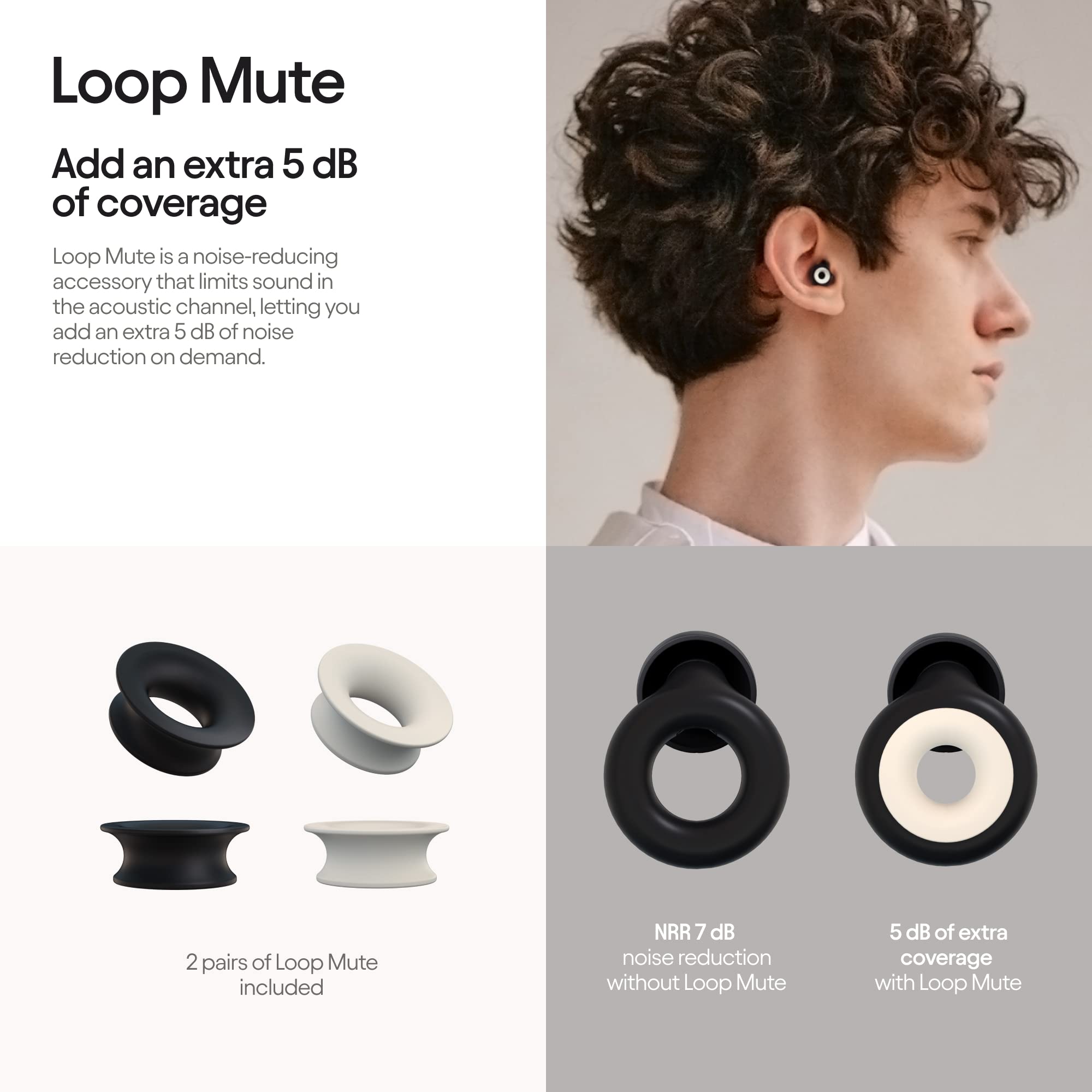 -STYLISH COMFORT - These high-fidelity earplugs come in 4 different sizes, so you can always find the perfect fit. The iconic round shape of Loop Experience Plus sits perfectly in your ears, making it a fashionable accessory that protects your hearing. On top of that, the additional Mute filter (-5 dB) is available in 2 colors, black and white, to further personalize your earplugs.