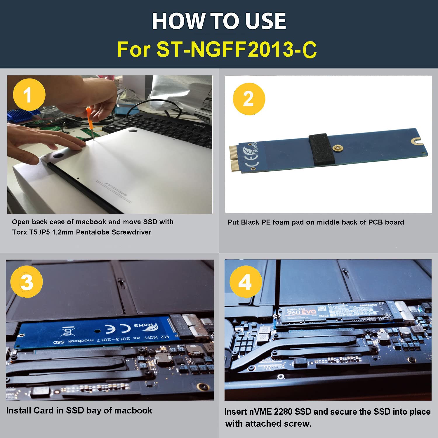 Tarjeta adaptadora SSD NGFF M.2 nVME Sintech para Mac de actualización de 2013 a 2015 (no compatible con MacBook Pro de principios de 2013)