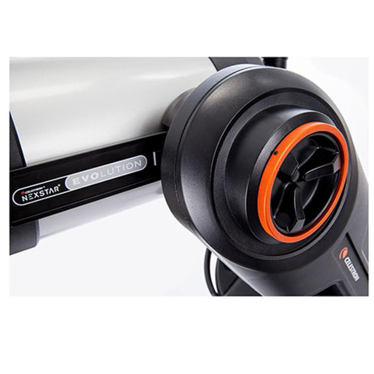 Celestron's signature telescopes reach a new level with NexStar Evolution 6, the first Schmidt-Cassegrain telescope with integrated WiFi. Leave your hand control behind and slew to all the best celestial objects with a tap of your smartphone or tablet. Connect your device to NexStar Evolution's built-in wireless network, and explore the universe with the Celestron mobile app for iOS and Android. Use the planetarium interface to view the night sky in real time or display a list of celestial objects currently visible based on your time and location. Our proprietary SkyAlign alignment procedure is built right into the Celestron mobile app, so you're ready to observe within minutes. Celestron engineers designed NexStar Evolution based on years of customer feedback. It offers many thoughtful design features that combine to provide you the best possible experience out under the stars. Forget about batteries or an external power supply. For the first time ever on a consumer telescope, NexStar Evolution includes its own built-in battery. With this ultra-long life lithium-ion phosphate battery, you'll be able to enjoy stargazing marathons up to 10 hours on a single charge. You can even use NexStar Evolution's USB charge port to top off the other devices in your life that need to stay powered on during an observing session. An intelligent power management system senses when battery levels are low and goes into power-saving mode to keep your telescope running for as long as possible. Setting up your NexStar Evolution is quick and painless with large, ergonomic handles. The all-metal tripod features a metal accessory tray with indentations for storing and carrying the tripod. During setup, leg etchings help you achieve a level, uniform height for your telescope. Manual clutches in both altitude and azimuth offer greater flexibility to manually point the telescope when powered off. Store up to 7 eyepieces in 2 accessory trays, one with an adjustable red LED illuminator. If you're interested in astroimaging, the 6-inch NexStar Evolution is an excellent, affordable way to get started. It's the only fork-mounted telescope in its price range that offers brass worm gears, along with improved motors. NexStar Evolution's tracking accuracy is so impressive, you can capture images of deep-sky objects like the Orion Nebula by simply attaching your DSLR camera. As you progress in the hobby of astroimaging, you can add our Pro HD Wedge to achieve longer exposures for more detailed astrophotos. Of course, the Schmidt-Cassegrain optical system offers bright, sharp views with StarBright XLT optical coatings-a great choice for visual observers and budding astroimagers alike. NexStar Evolution is equipped with 4 auxiliary ports--2 on top of the fork and 2 on the bottom. A classic NexStar+ hand control is included, but is not necessary when using NexStar Evolution with the mobile app. The telescope also includes a StarPointer finderscope, two 1.25" Plossl eyepieces, a 1.25" star diagonal, and an AC adapter.