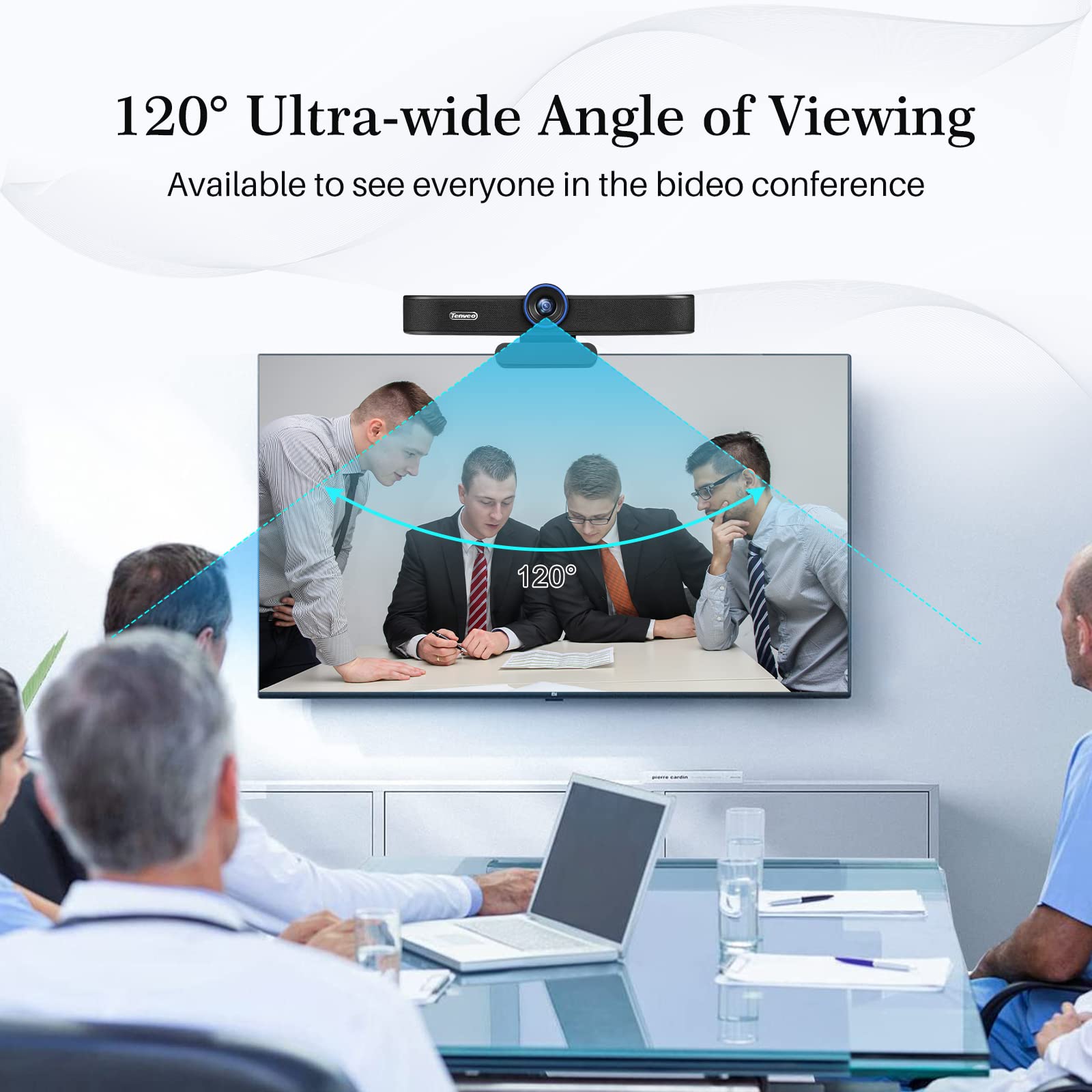 -4K Ultra HD camera with multiple video resolutions, including Ultra 4k, 1080p and 720p. Ultra wide 120 degree field of view, 5m audio pickup and extension microphone.