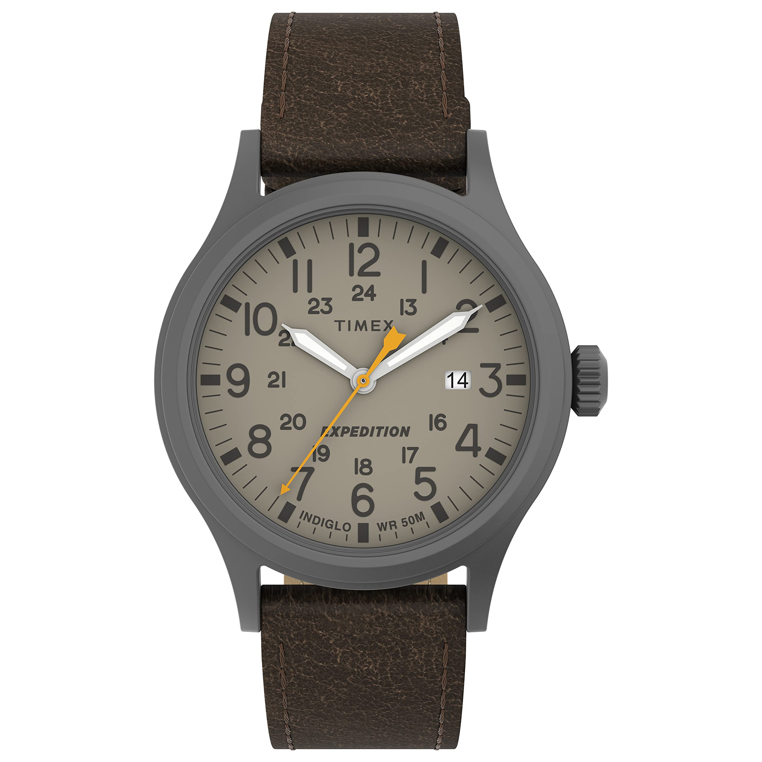 -Adjustable dark brown 20mm genuine leather strap fits up to 8-inch wrist circumference-Khaki dial w.....