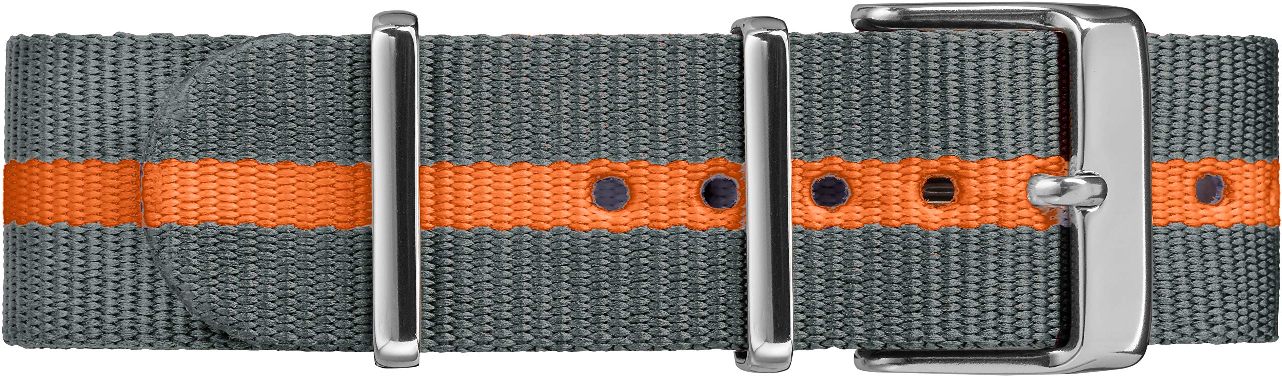-Comfort Fit: Adjustable gray and orange striped 20 mm nylon slip-thru strap fits wrists up to 8 inches for versatile wear