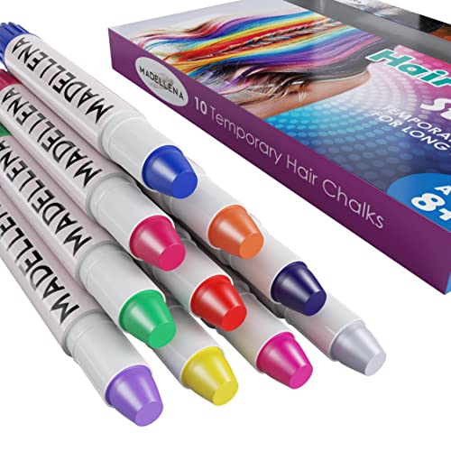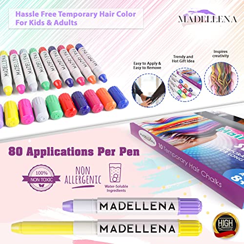 -Set Includes 10 Fantastic Temporary Hair Chalks - Temporary Hair Dye/Color For Kids - Up To 80 Applications Per Pen.