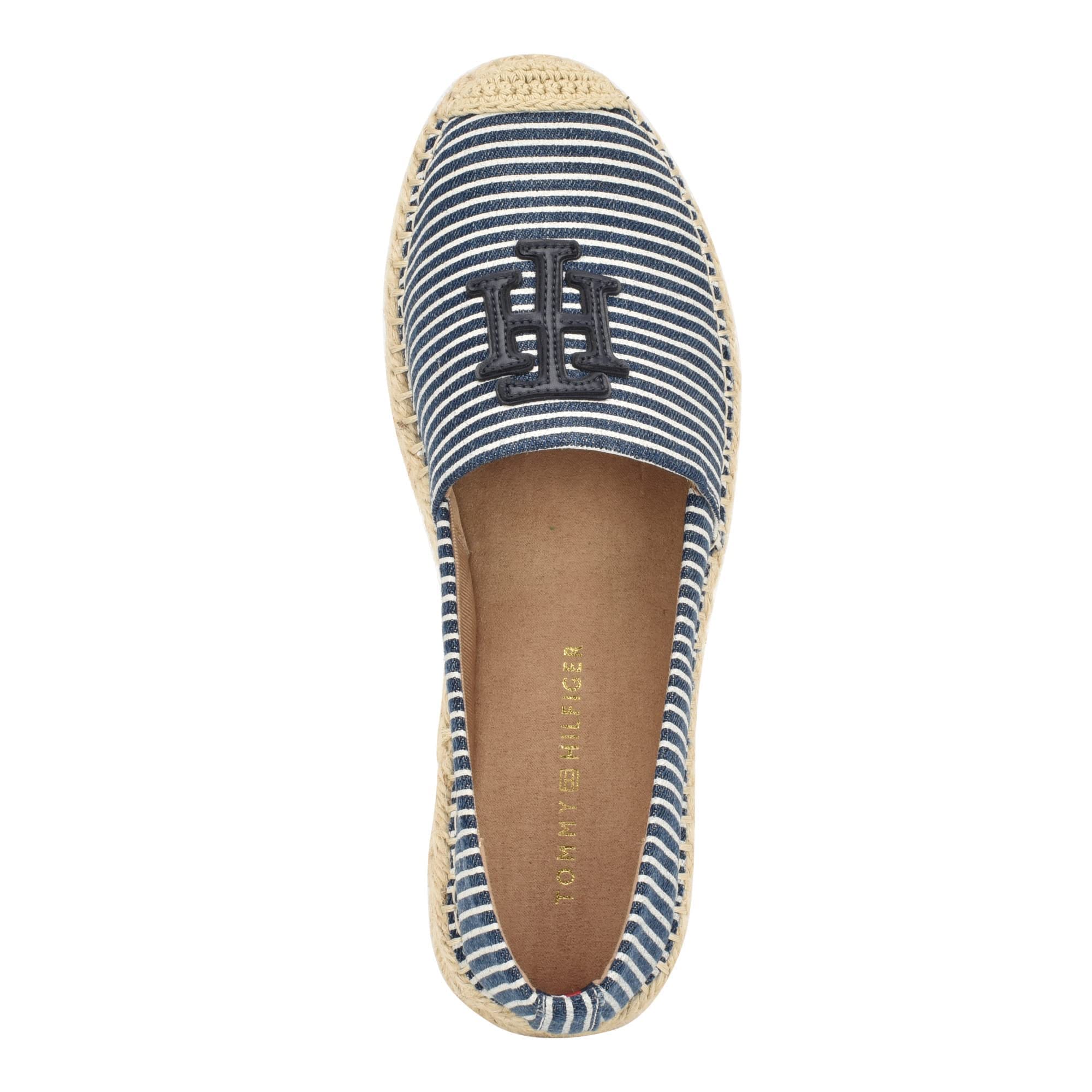 Description A classic slip-on espadrille, the Peanni espadrille will add a modern flare to your summer wardrobe. This shoe will be great to run around town all day. The Peanni brings a signature Tommy Hilfiger twist to the classic espadrille with a bold TH logo on the vamp.