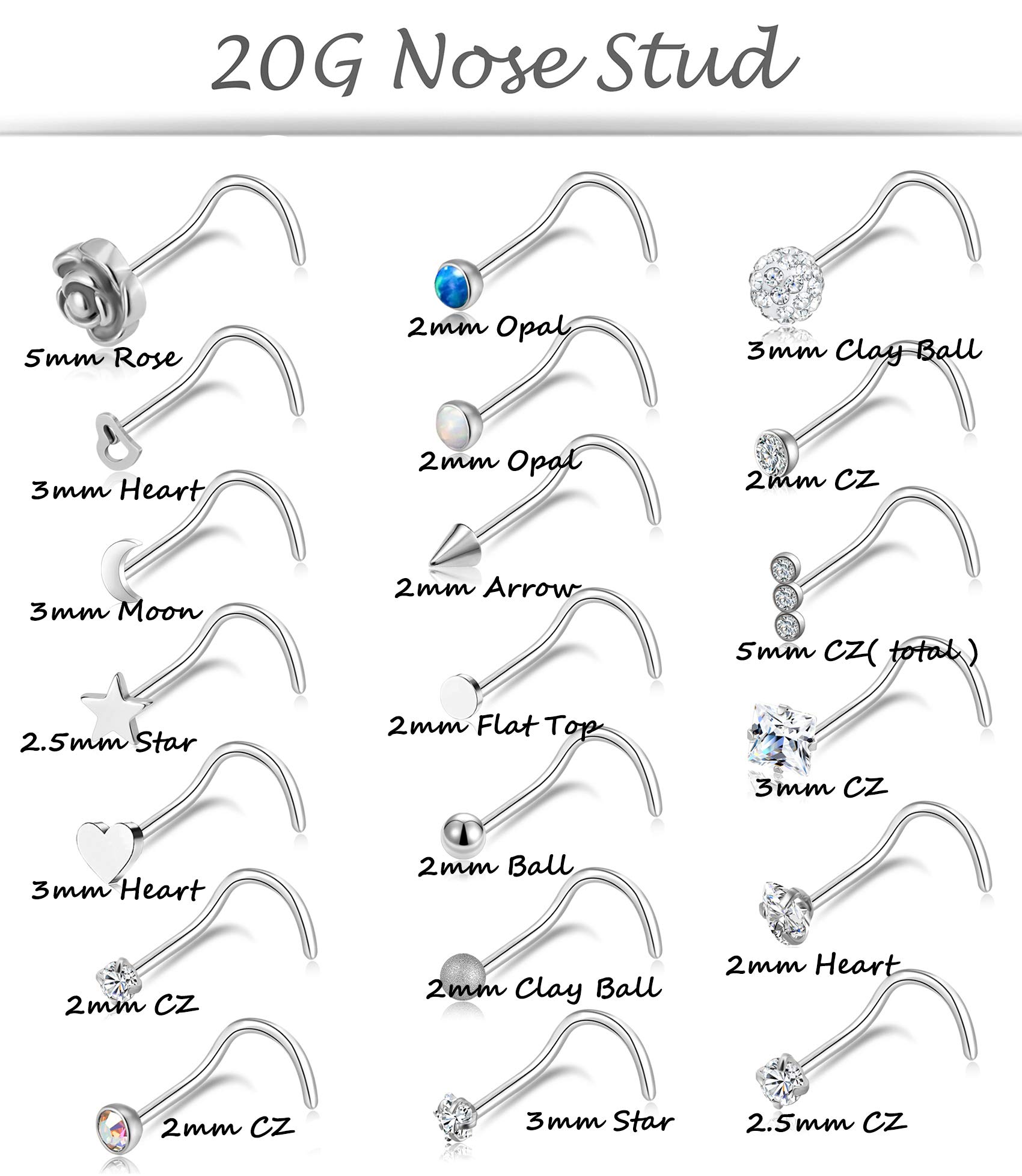-ASSORTED HEADS—20 Pieces in One Set, Heads Size: 2-5mm;Coming in 20 Different Designs: Pretty Opal in Two Colors/ Cute Ball/Round, Square Clear CZ/Heart Clear CZ/Round Clear Colorful CZ/Flat Top/ Elegant Rose/Delicate Heart/ Sparkly Clay Ball/Shiny Moon and Star, Attractive and Trendy, More Choices for Daily Wear