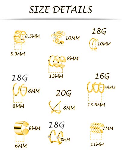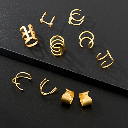 - MULTIPLE DESIGNS-10 Pairs in One Set, Totally 10 Different Styles: Personalized Cross X, Simple 2 Row Wrap, Trendy 3 Row Wrap, Classic U Shape Dome, Perfectly As Ear Cuff, Tragus Ring, Helix Cartilage Clip and Fake Nose Ring, Try Different Pair Every Day