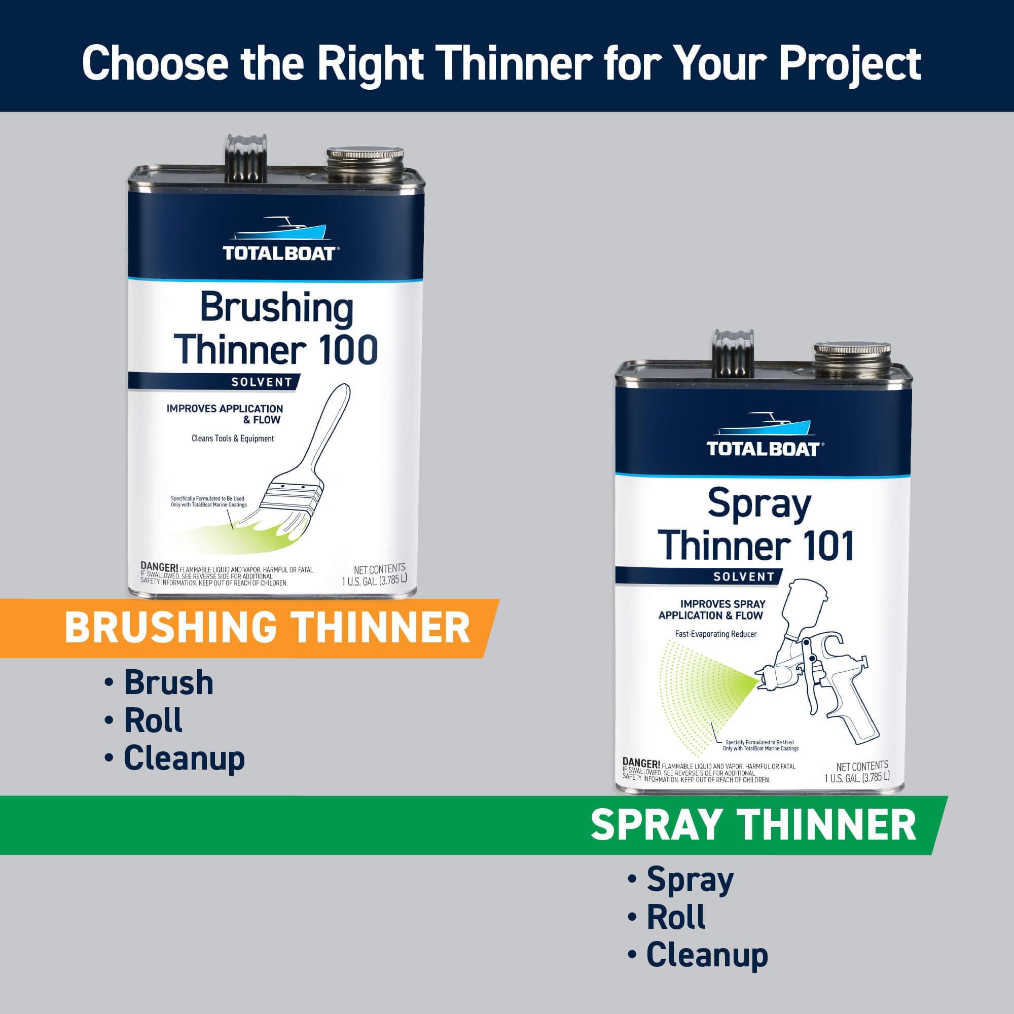 -AVAILABLE IN GLOSS OR SATIN (low-sheen), in Pint, Quart and Gallon sizes; Coverage: 360-400 sq ft/gallon; Thinner: TotalBoat Special Brushing Thinner 100 (brushing/rolling); TotalBoat Spray Thinner 101 (spraying)