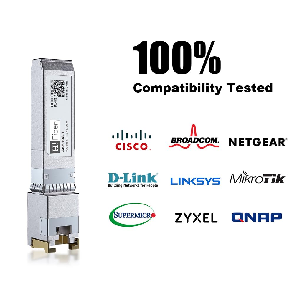 -Wide Compatible: Perfect for Cisco SFP-10G-T-S, Ubiquiti, UniFi, Fortinet, Meraki, MikroTik, TP-Link TL-SM5310-T, Netgear, D-Link, Broadcom, QNAP, Linksys, Supermicro, Edge-core, EMC, F5, Norkia and Other Open Switches with 10G SFP+ Port. (Not compatible with Ubiquiti US-48-500W and UDM-Pro, we recommend using B09MJYPFMM for Ubiquiti devices)