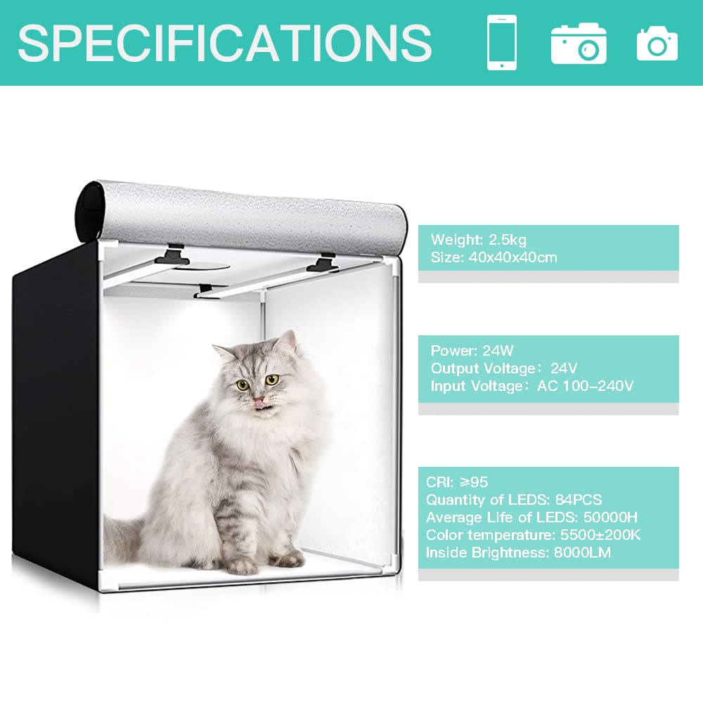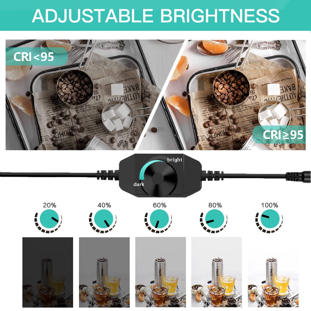 -【Dimming Range 0%-100%】With dimmable photo box, you can adjust the brightness to get the desired lighting effect. Ultra-bright (8000 lm) and high color rendering (95+) provide natural and vivid shooting effects. Let anything you put in the light box present great texture.