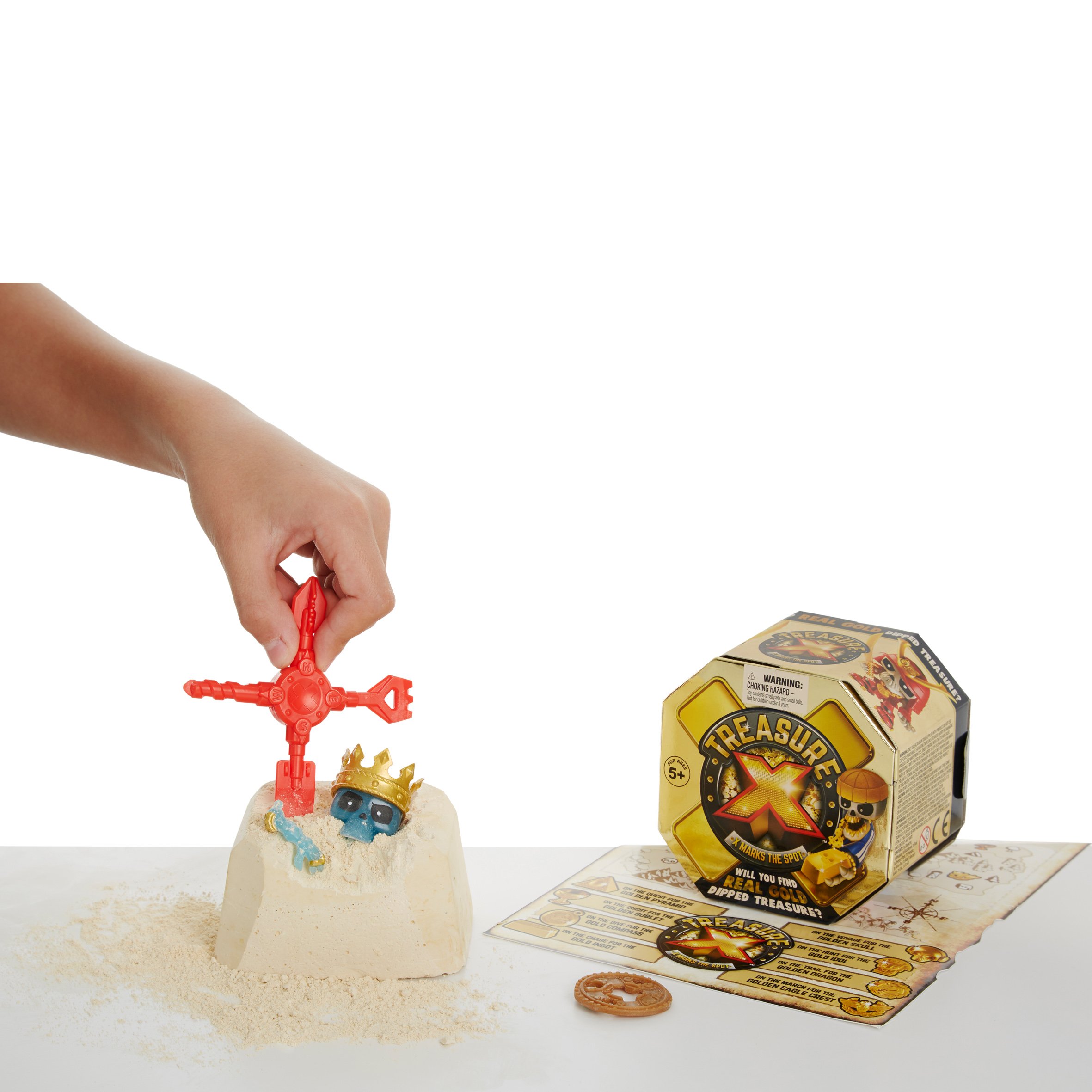 Product Description X marks the spot for a hunt like no other! Search for real gold> dipped treasure through 10 levels of adventure! Treasure X is the ultimate surprise-reveal collectible with a multi layered reveal process, cool figures, and the chance to find real treasure! Rip, fizz and chip away to reveal the layers> and discover the secrets hidden within! the Legends of treasure set contains 3 treasure blocks for you to reveal. Inside one of these blocks you are guaranteed to find a real gold dipped treasure! As you explore the 10 levels of> adventure, you will also discover 3 legendary golden hunters! which golden Treasure hunters will you find? There are 9 hunters> to collect from the Legends of treasure sets! Set Contains: 3x character 3x Rock Vessel 3x Weapon 1x Tool 3x Treasure Chest 2x Treasure 1x Gold Treasure 1x Large Map / Collector's Guide 3x Medallion 3 x Scrolls Assortment of 24