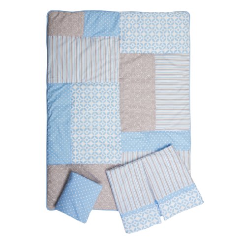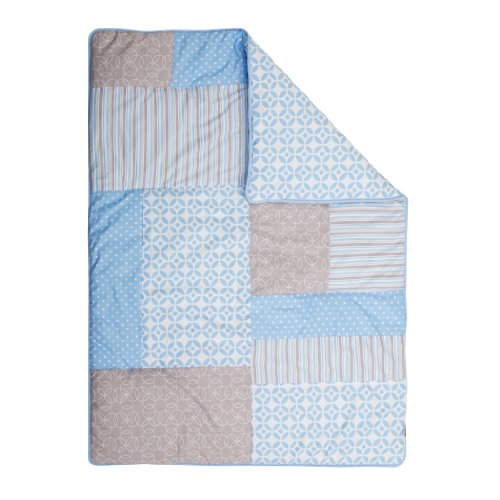 Trend Lab Logan - Juego de cama para cuna de 3 piezas, azul / gris / blanco