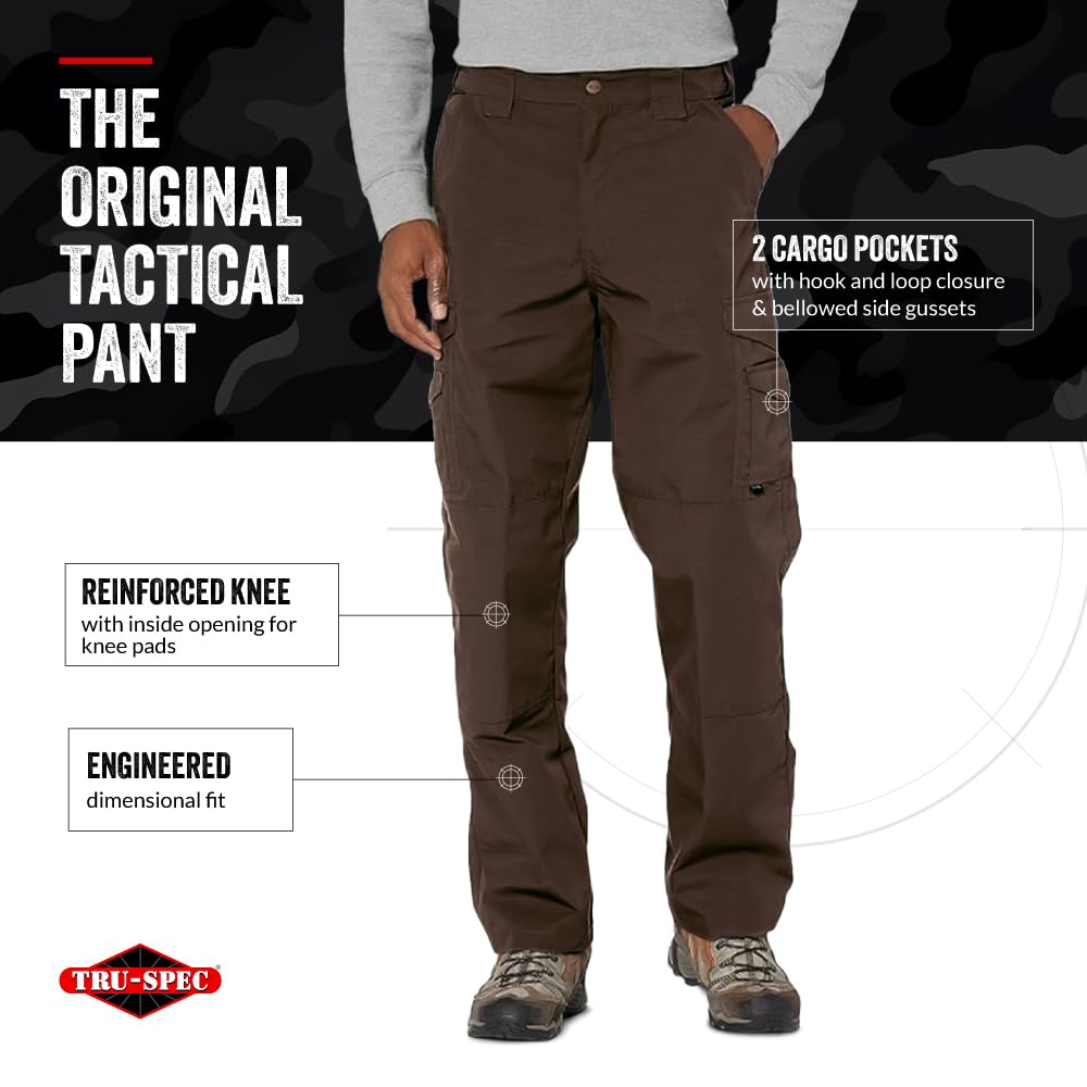 Tru-Spec 24-7 Pantalones tácticos originales para hombre - Pantalones de trabajo tipo cargo duraderos y resistentes al agua con aberturas ocultas para transporte y rodilleras, marrón - 32W x 30L