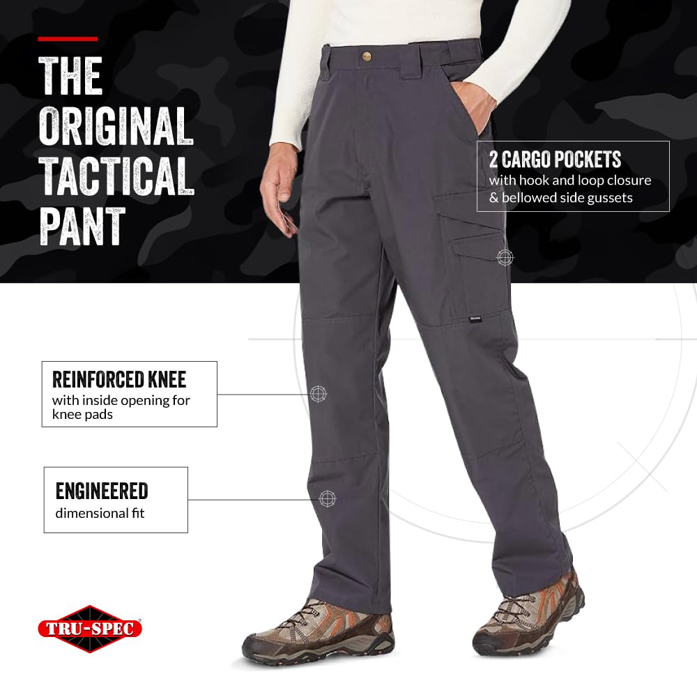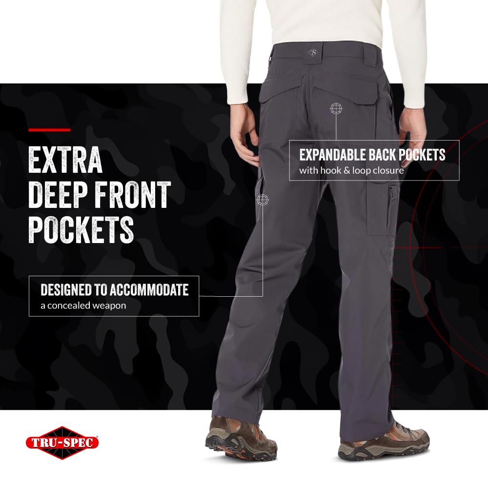 Description TRU-SPEC 24-7 Tactical Pants are built with an engineered dimensional fit that is just right for on-duty or off-duty wear. These feature a comfortable slider waistband and deep cargo pockets that are designed to accommodate a concealed weapon. Modify the length of the tall, loose fit cargo pants according to your preferred style, these pants with knee pad pockets cannot be beaten for utility and comfort. These classy, durable tactical cargo pants are designed with multiple visible and hidden pockets, making them convenient enough to be used as work or everyday pants as well. Available in various colors and sizes, these comfy pants for men are made of Polyester and cotton rip-stop fabrics.
