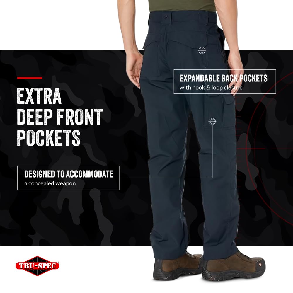 Tru-Spec 24-7 Pantalones tácticos originales para hombre - Pantalones de trabajo tipo cargo duraderos y resistentes al agua con aberturas ocultas para transporte y rodilleras, azul marino - 32W x 32L