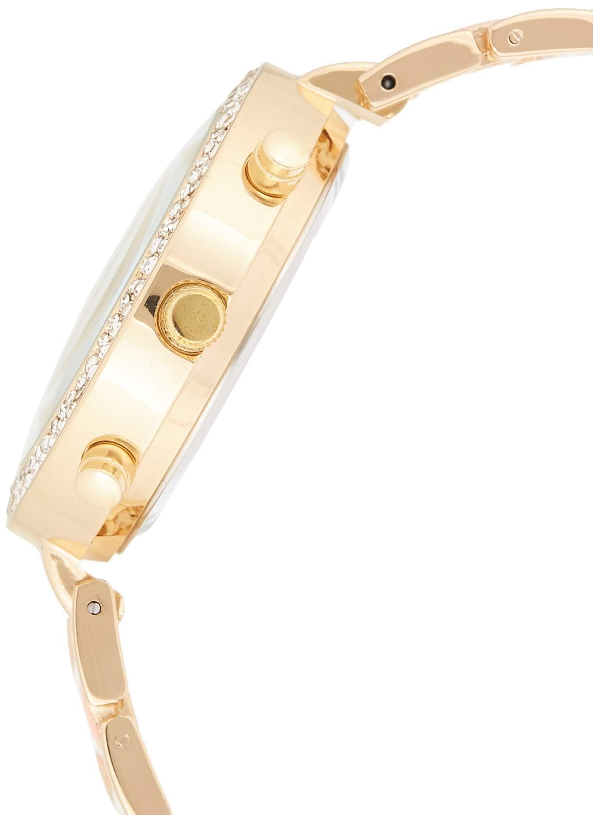 -Gold-tone watch featuring sparkling bezel and pink dial with applied logo and Roman numeral indices