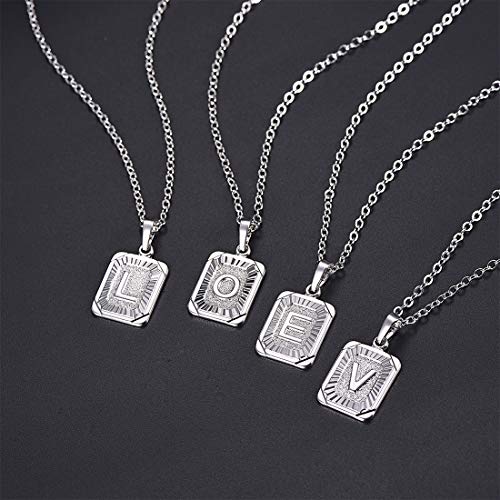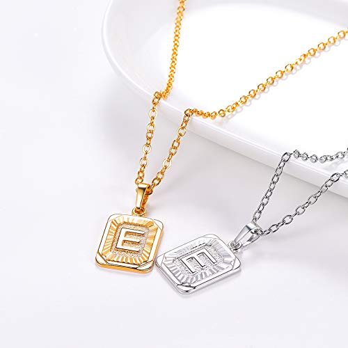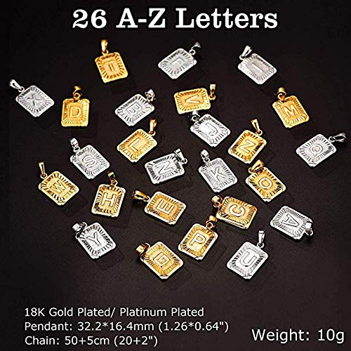U7 - Collar con monograma de la A a la Z, 26 letras, colgantes en oro de 18 quilates / chapado en platino, pequeños collares cuadrados con iniciales para mujeres y niñas, cadena de 18 ", con servicio personalizado, caja de regalo empaquetada