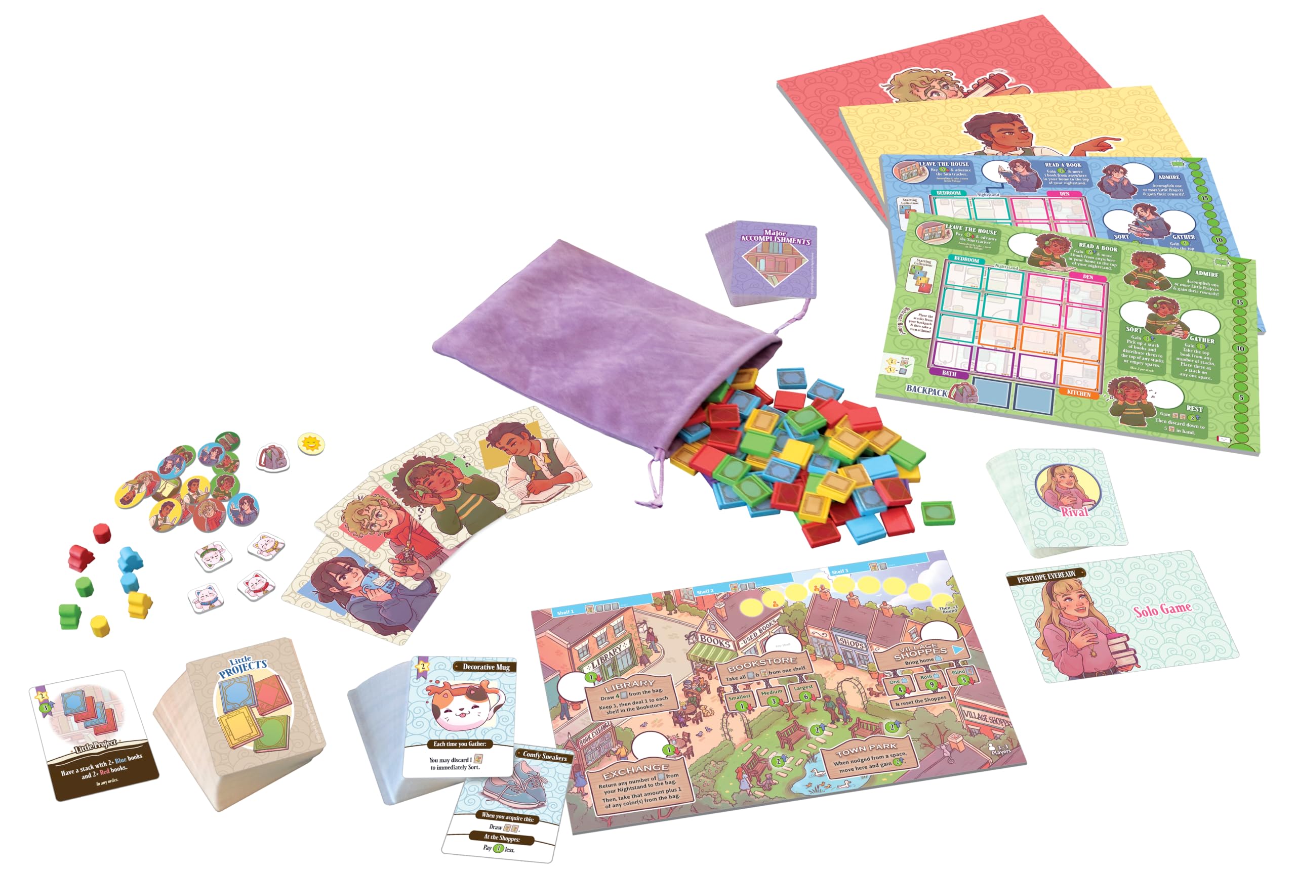 -BEAUTIFUL COMPONENTS – Includes 130 illustrated book tiles with engraved spines, four apartment mats, tokens, and a village board that create an inviting, tactile tabletop experience for cozy gamers.
