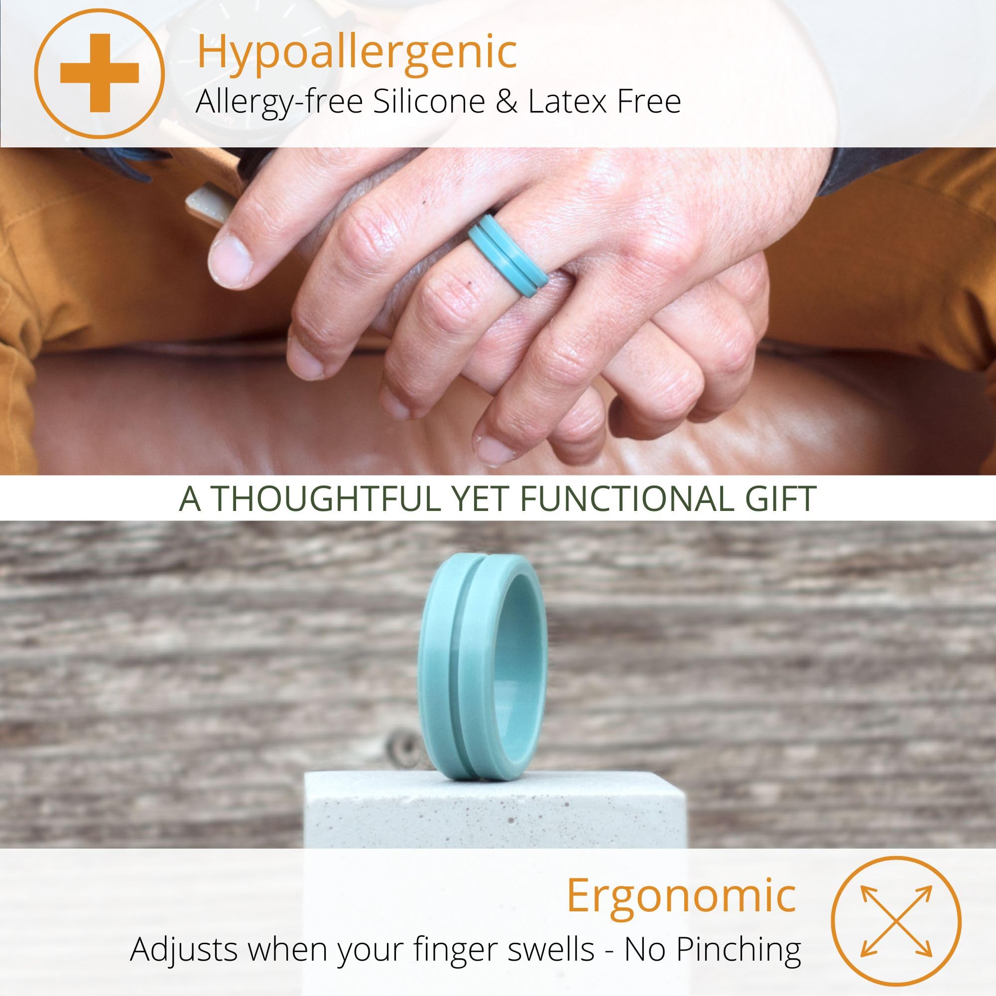 Anillo de bodas de silicona Unii | Alianza de boda de goma de seguridad | Anillo atlético para hombres activos | Anillo con ranura fina de 7 mm de ancho | La mejor alternativa para el trabajo, la mecánica, los deportes y el anillo de entrenamiento | Turqu