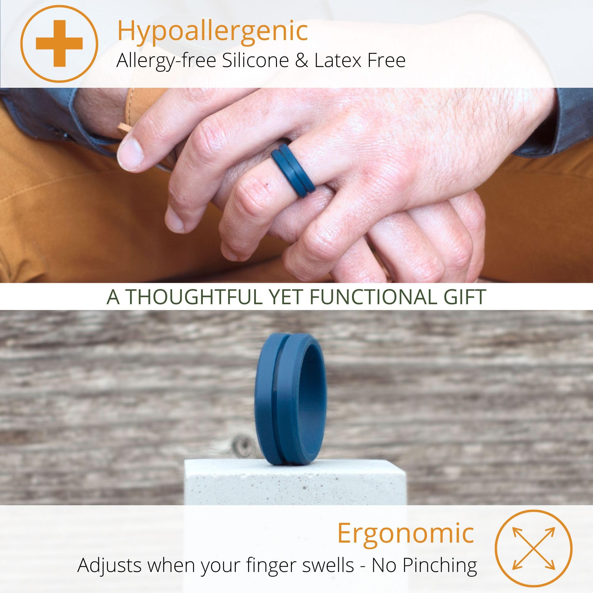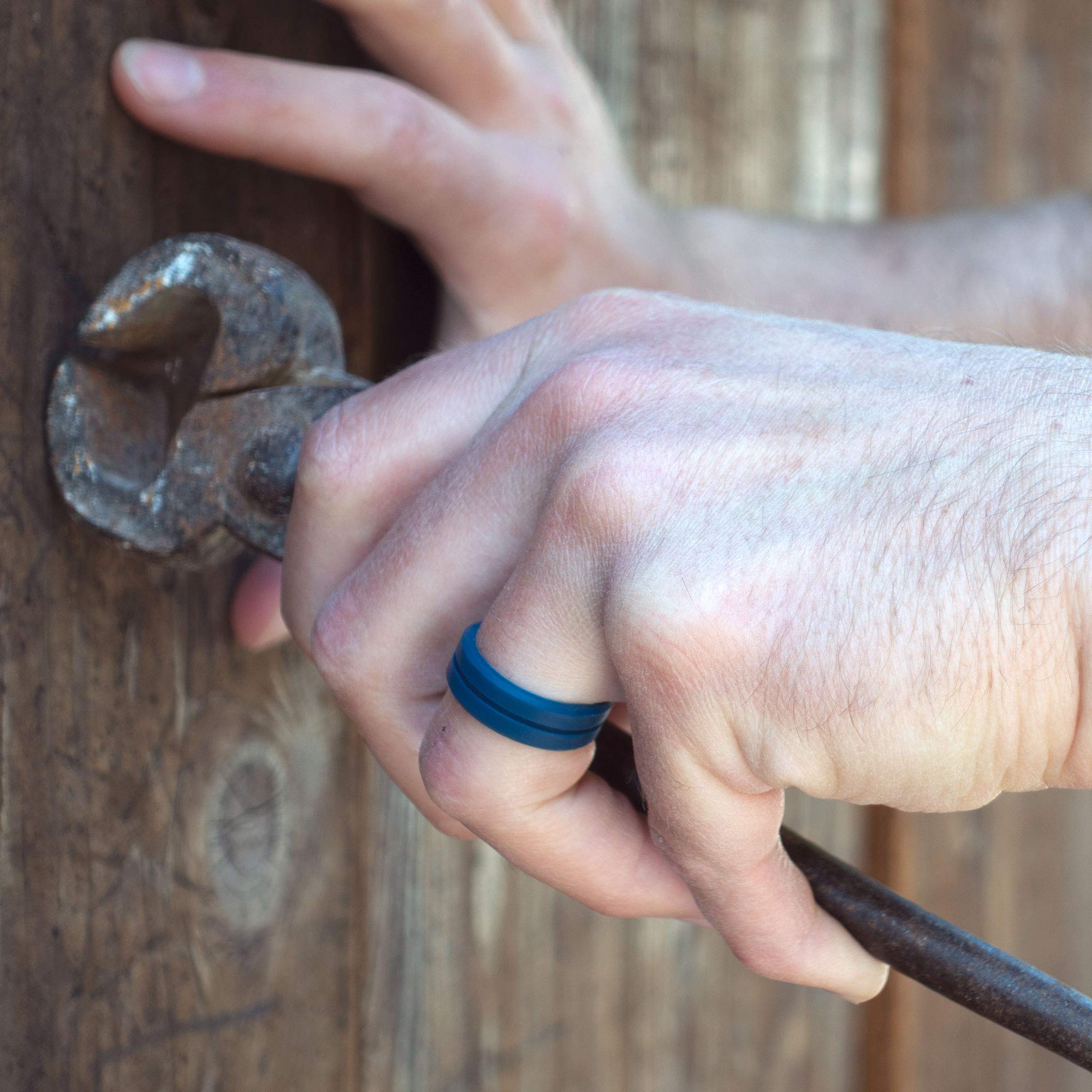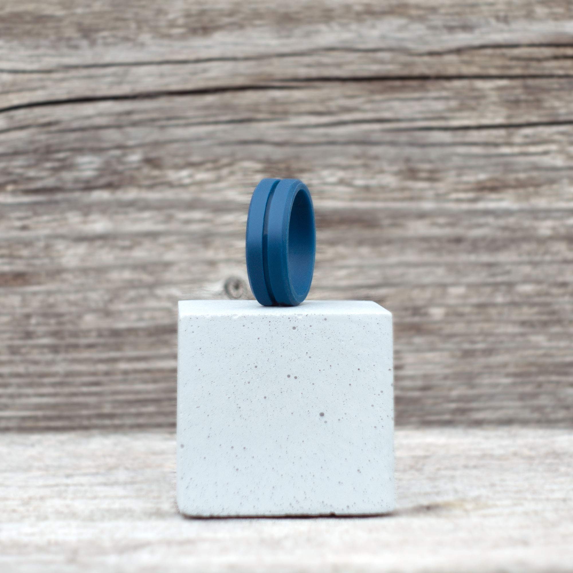 Anillo de bodas de silicona Unii | Alianza de boda de goma de seguridad | Anillo atlético para hombres activos | Anillo con ranura fina de 7 mm de ancho | La mejor alternativa para el trabajo, la mecánica, los deportes y el entrenamiento | Azul marino - T