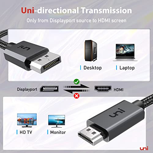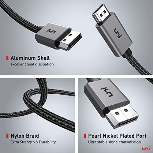 Cable uni DisplayPort a HDMI 4K de 10 pies, alta velocidad (1440P@60Hz 1080P@120Hz) Cable DP unidireccional a HDMI [carcasa de aluminio, trenza de nailon] Compatible con HP, DELL, GPU, AMD, NVIDIA, etc.