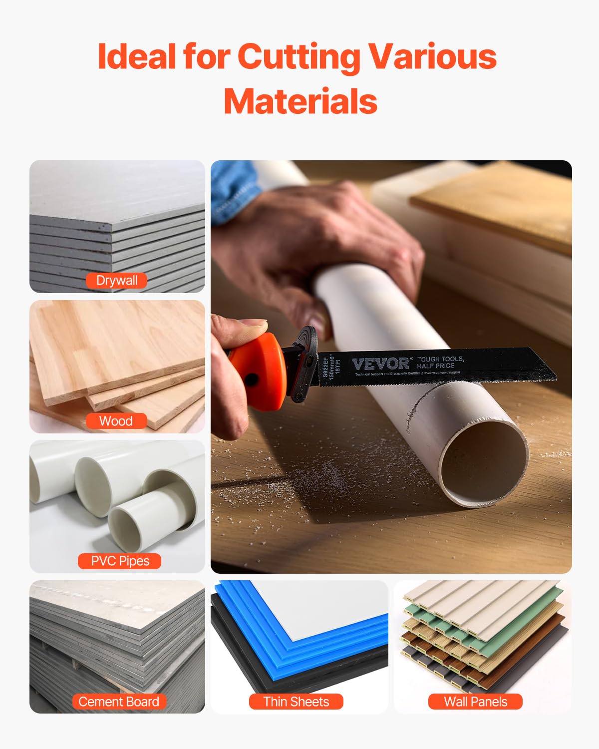 VEVOR Sierra de cerradura, 6 pulgadas, mango de agarre suave, paneles de yeso de múltiples hojas 8 en 1, dientes de tierra triples, para cortar paneles de yeso, madera, metal, plástico, tablero de yeso, hoja delgada
