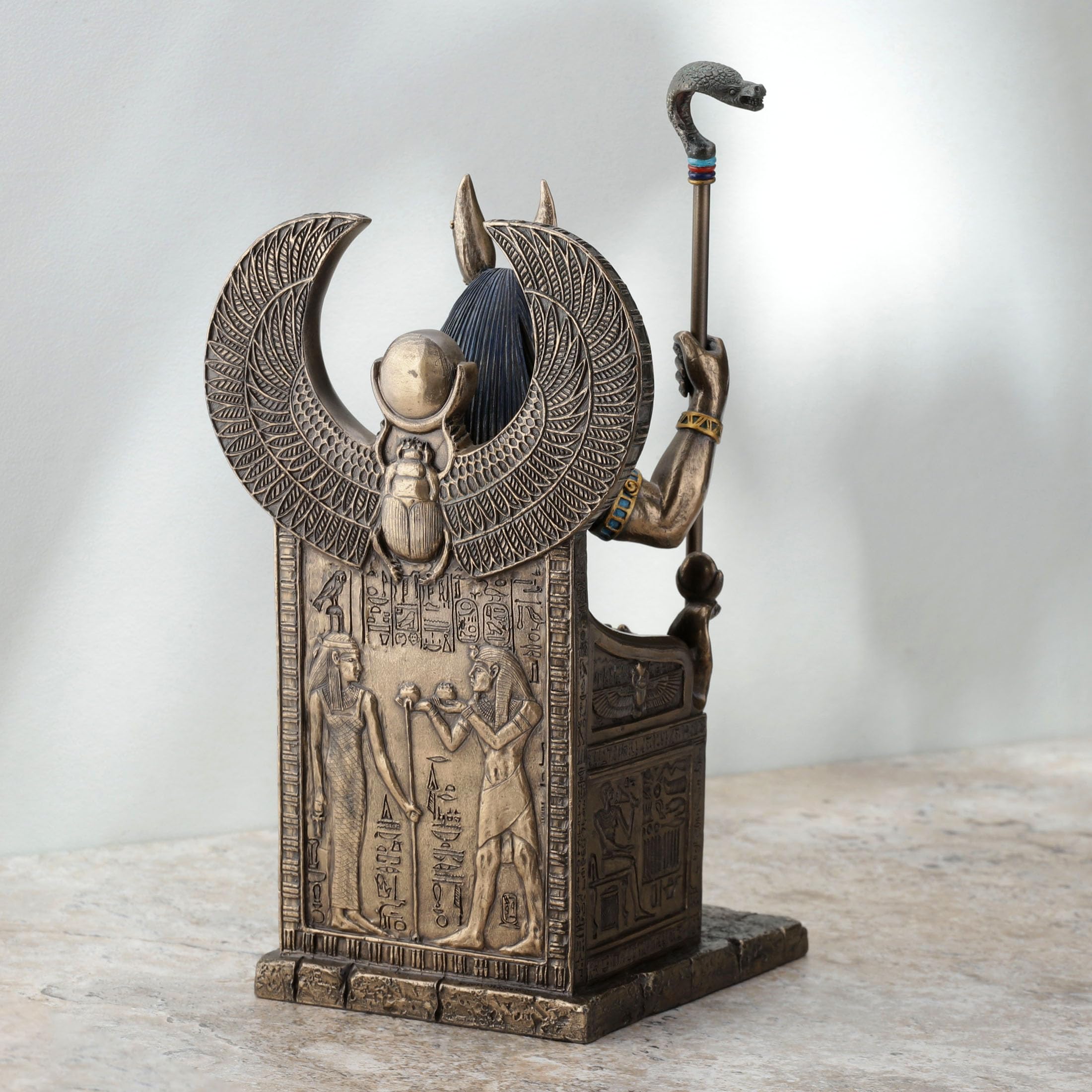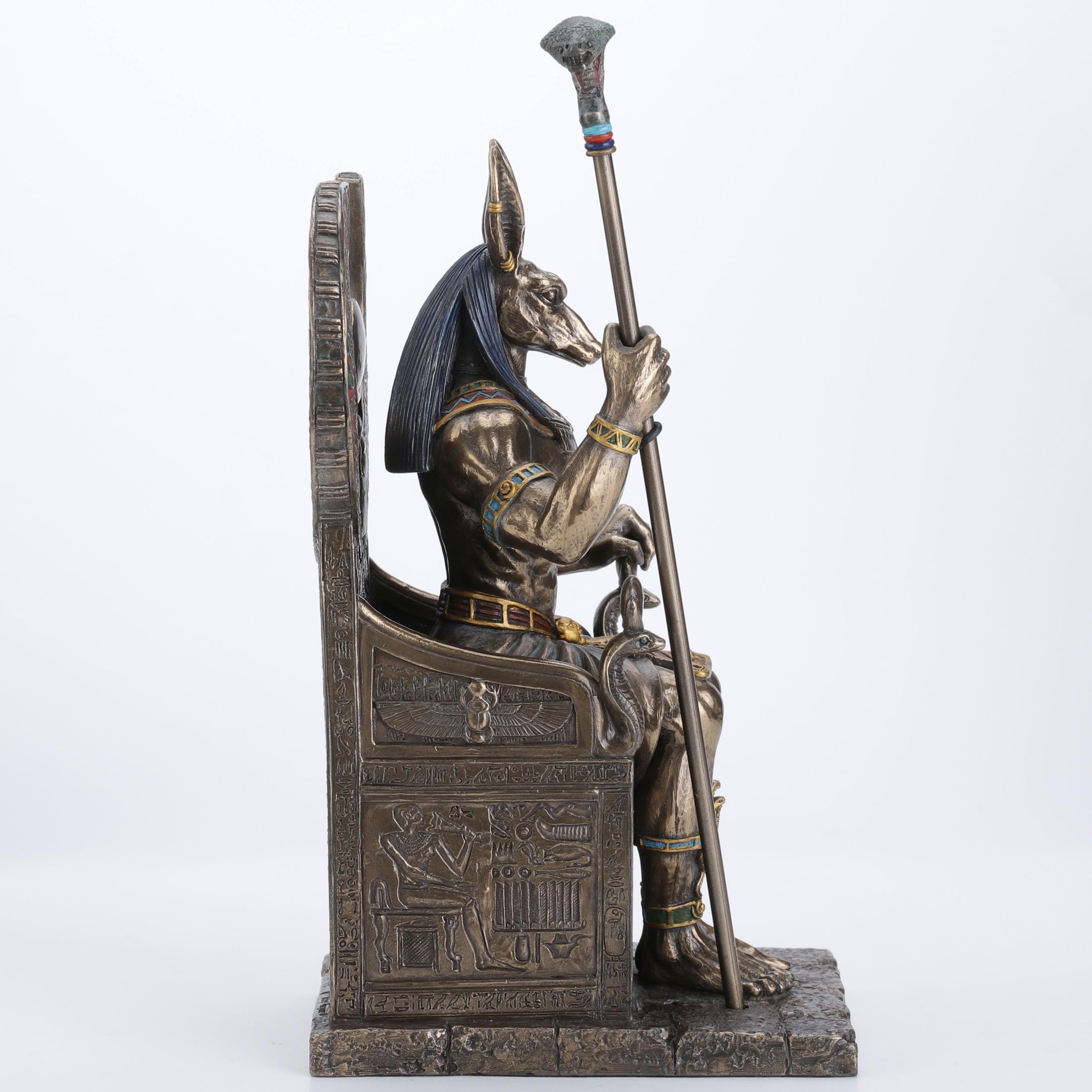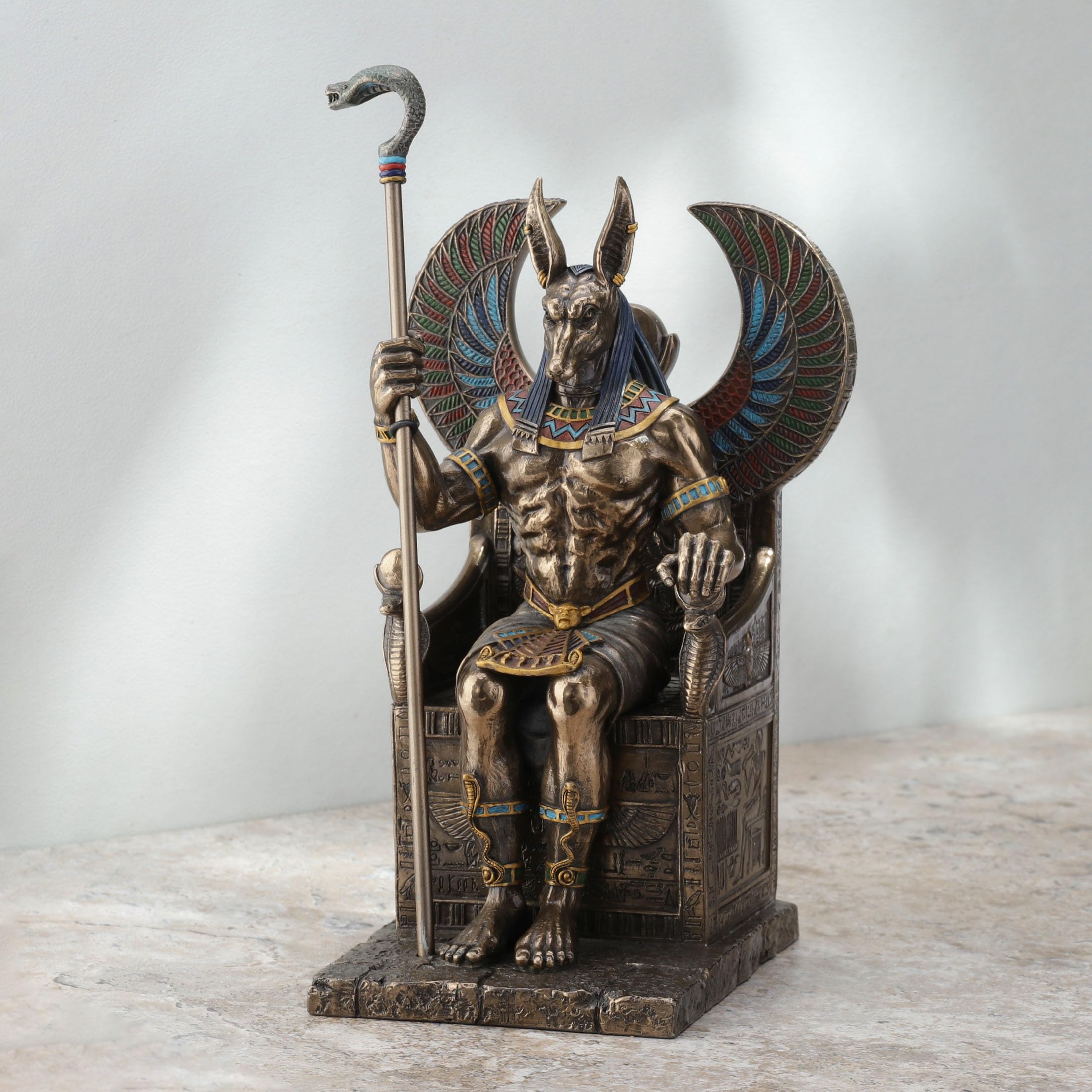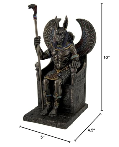 Veronese Design Estatua del dios egipcio Anubis sentado en el trono, resina fundida en frío, acabado en bronce antiguo, 10 5/8 pulgadas de alto